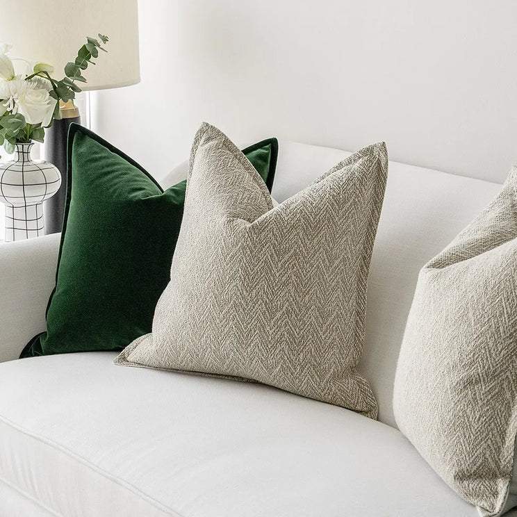 In pure cotton, this four-piece cushion set combines cosy comfort with vivid colour. We've teamed two velvet cushions in rich, dark green with two neutral zigzag cushions to create this premium bundle.