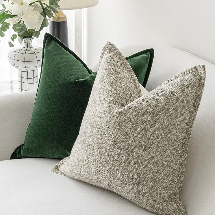 Design: Two dark green velvet cushions and two zigzag cushions with contrast back