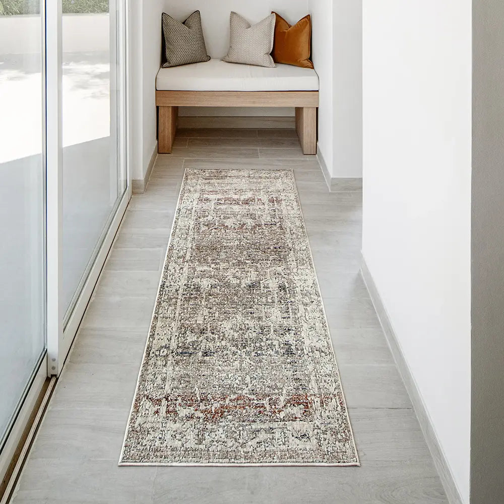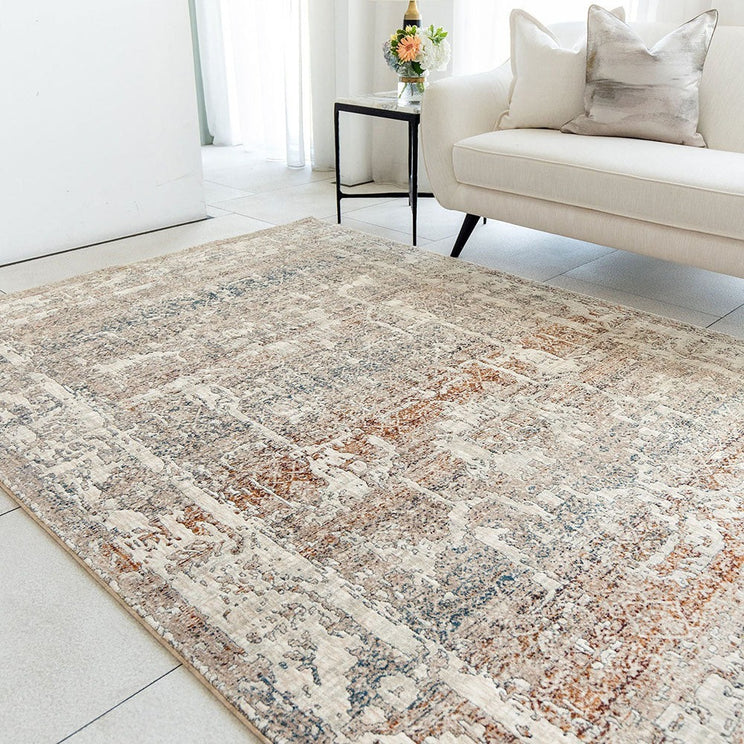 This beige and grey rug from our Ethan range has a traditional pattern with deliberate fading to create a modern heirloom for your home.