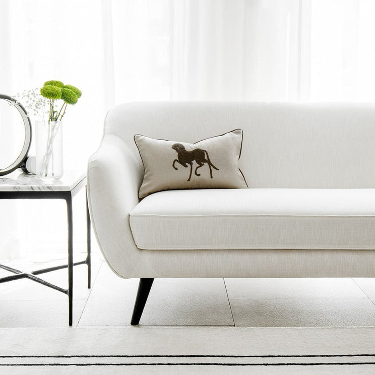 Bring your living room to life with luxury embroidered cushions. This velvet accent cushion features an eye-catching motif in the centre – a graceful stylised horse that’s bound to charm your guests.
