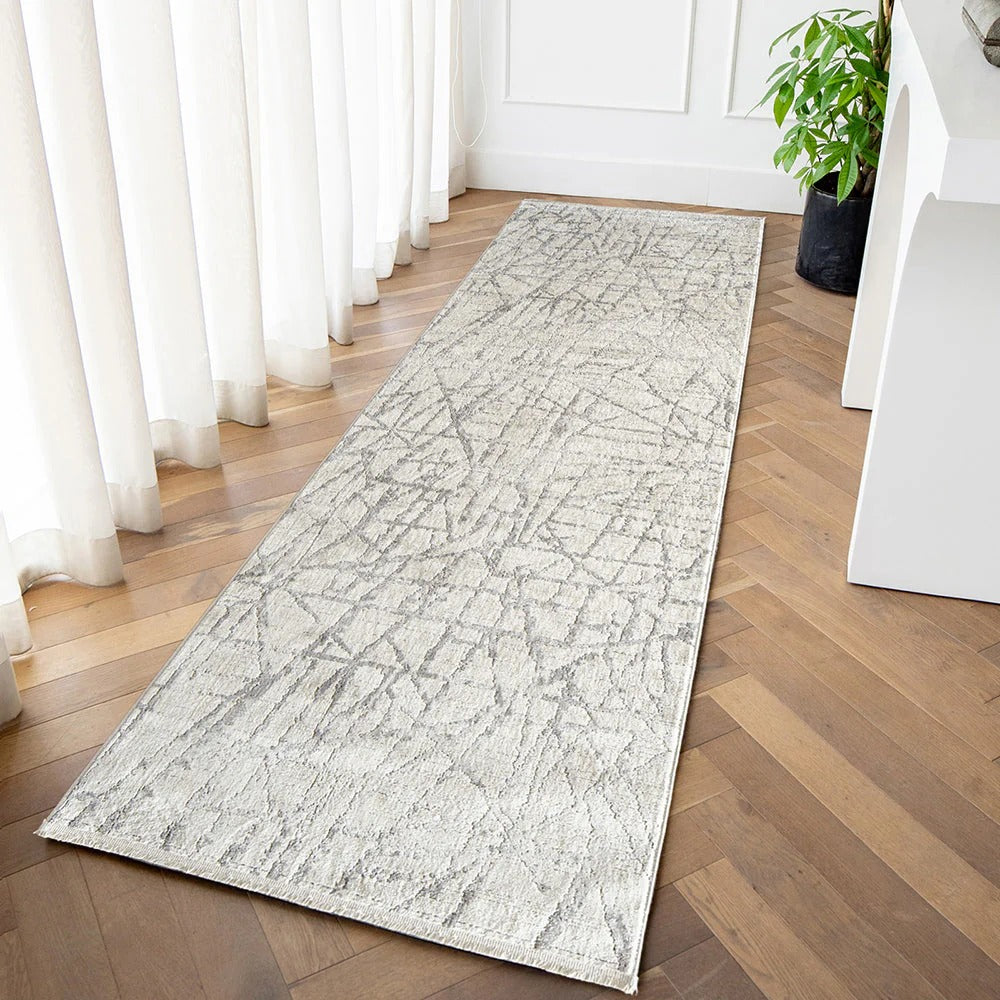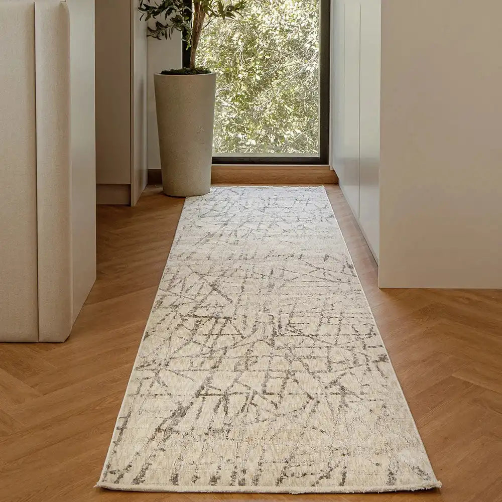 With a hint of shimmer, this beige rug features a modern criss-cross design in a versatile colour palette for a perfectly polished look.