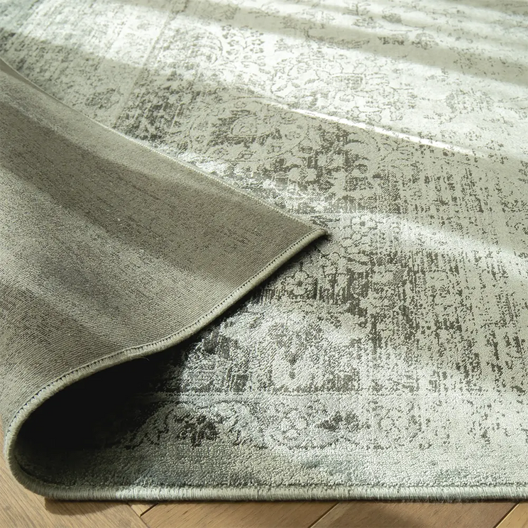 In a sophisticated shade of grey, this distressed carpet is a vintage style that even minimalists will fall for.