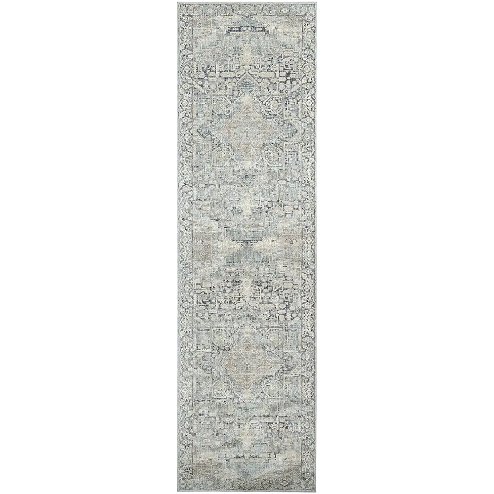 Expertly distressed, this vintage-style rug has an ornate border and is finished with fringing at each end.