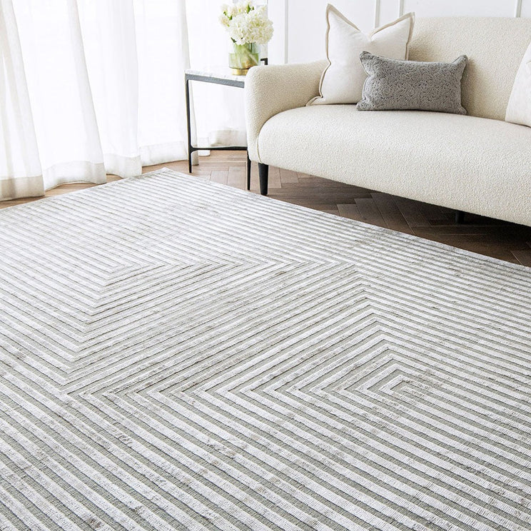 This grey rug has an op-art feel to make a bold statement in a contemporary interior.