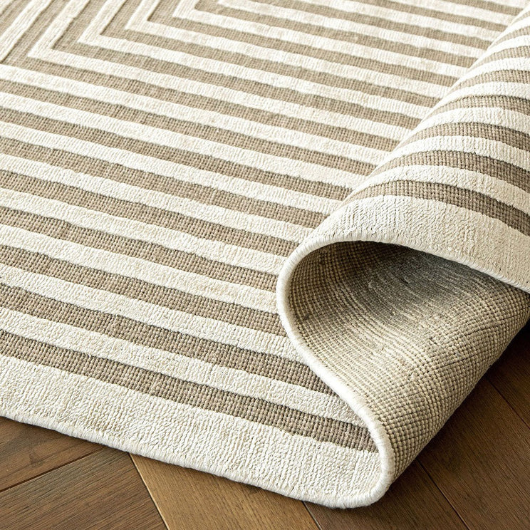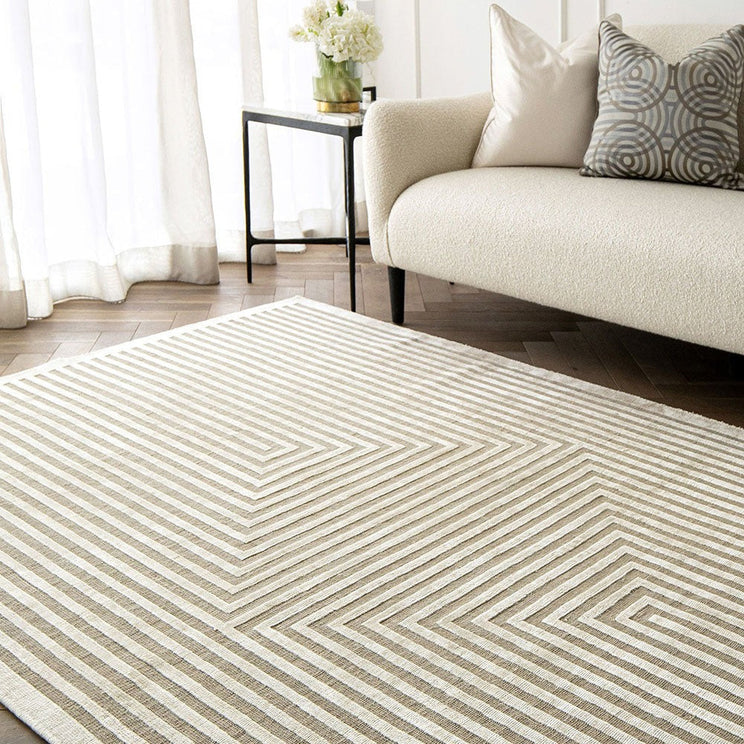 This beige rug has an op-art feel to make a bold statement in a contemporary interior.