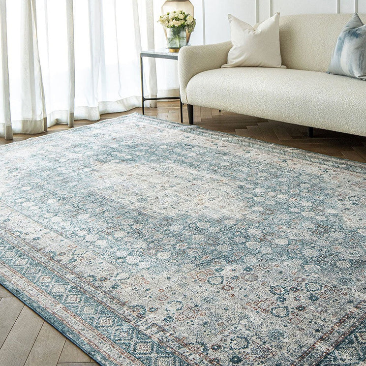 With an ornate design and lustrous texture, our Harper Sky traditional rug is a truly special piece for your home.