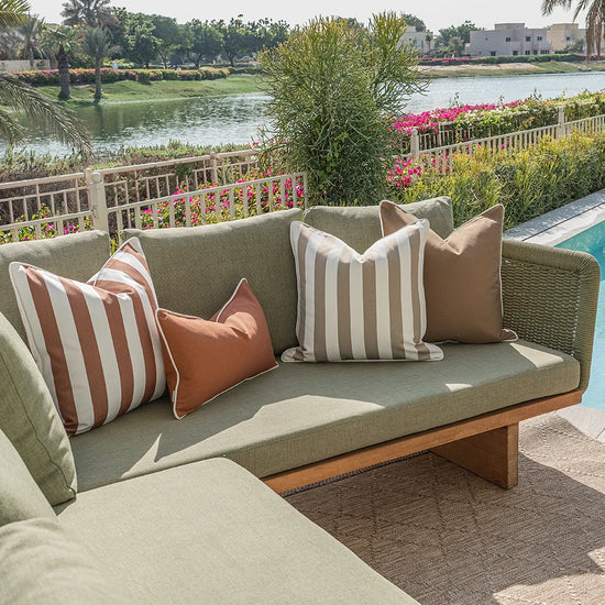 Weather-resistant, fibre-filled cushions for comfort that elevates any outdoor space
