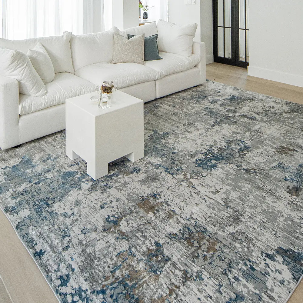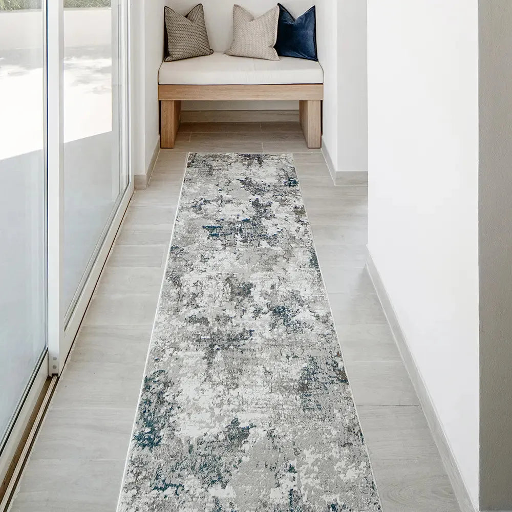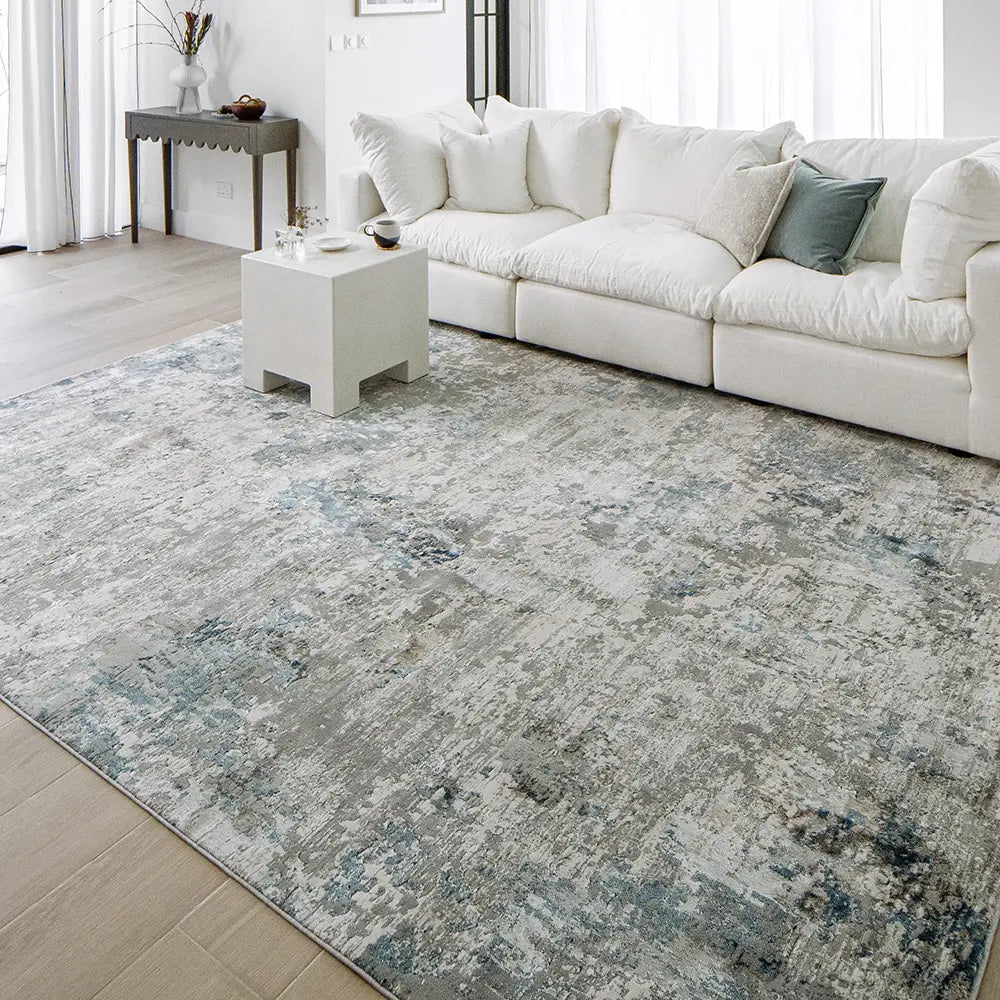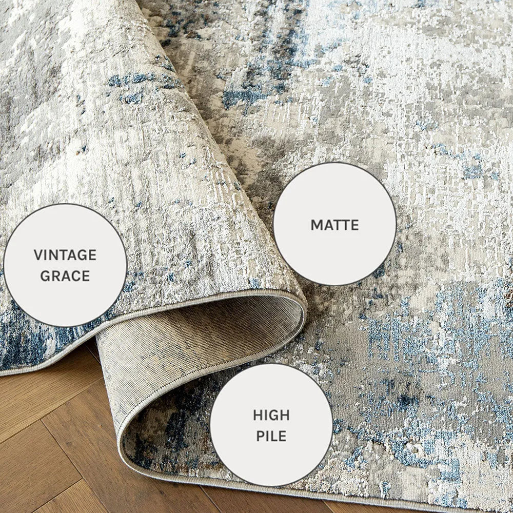This textured carpet has a distressed abstract pattern to give it a beautiful vintage aesthetic.