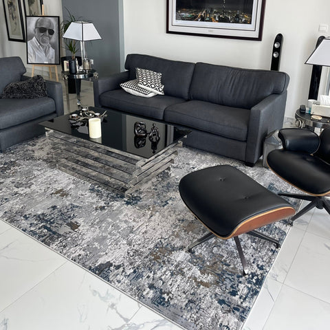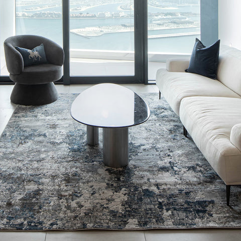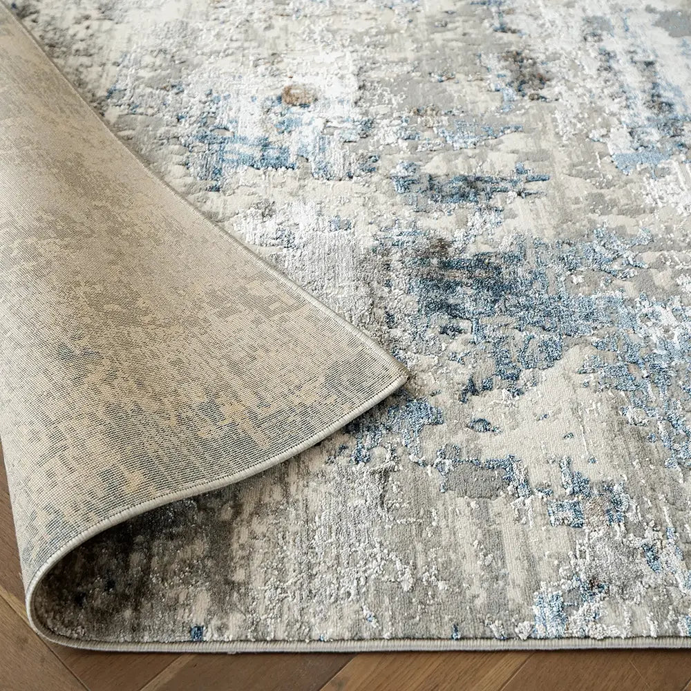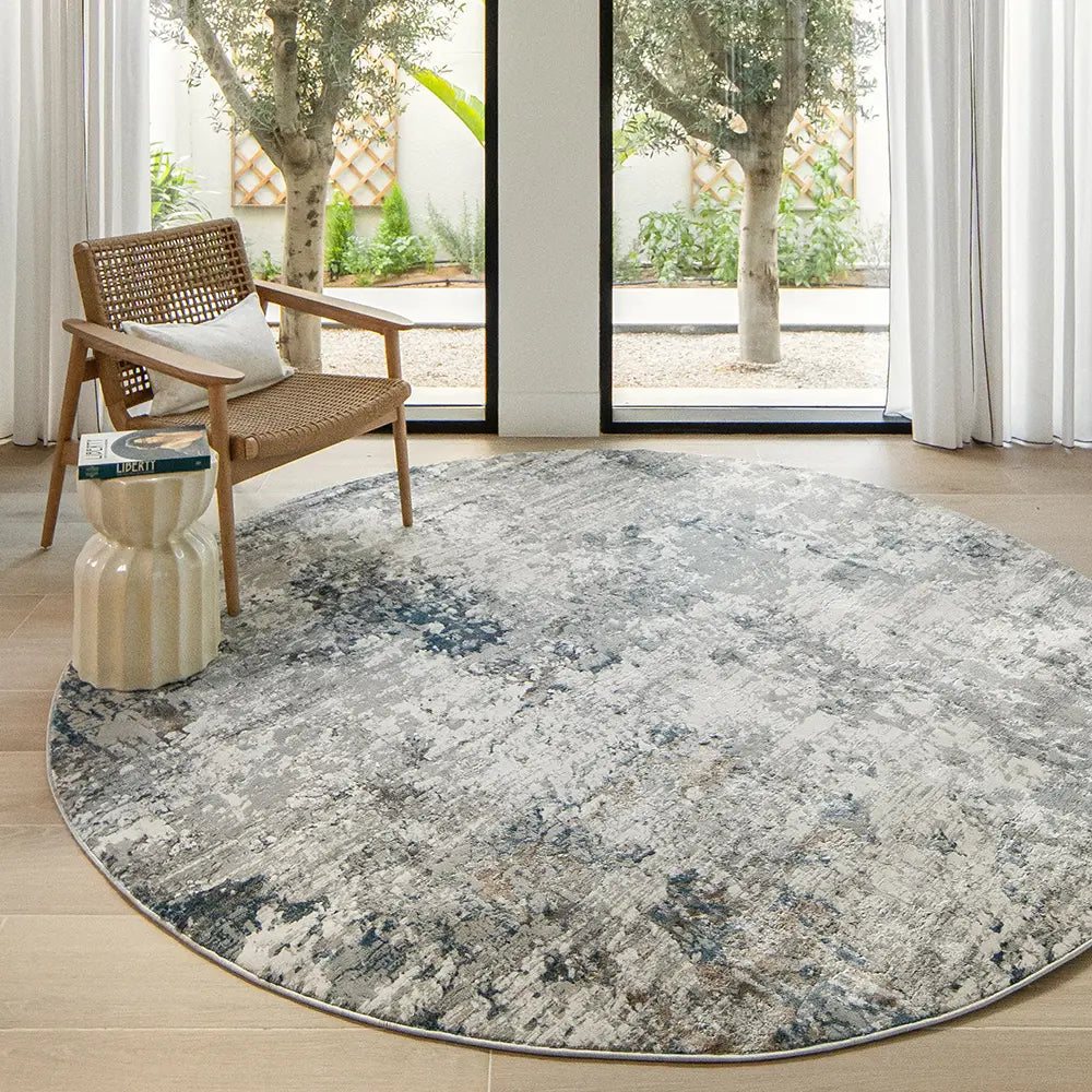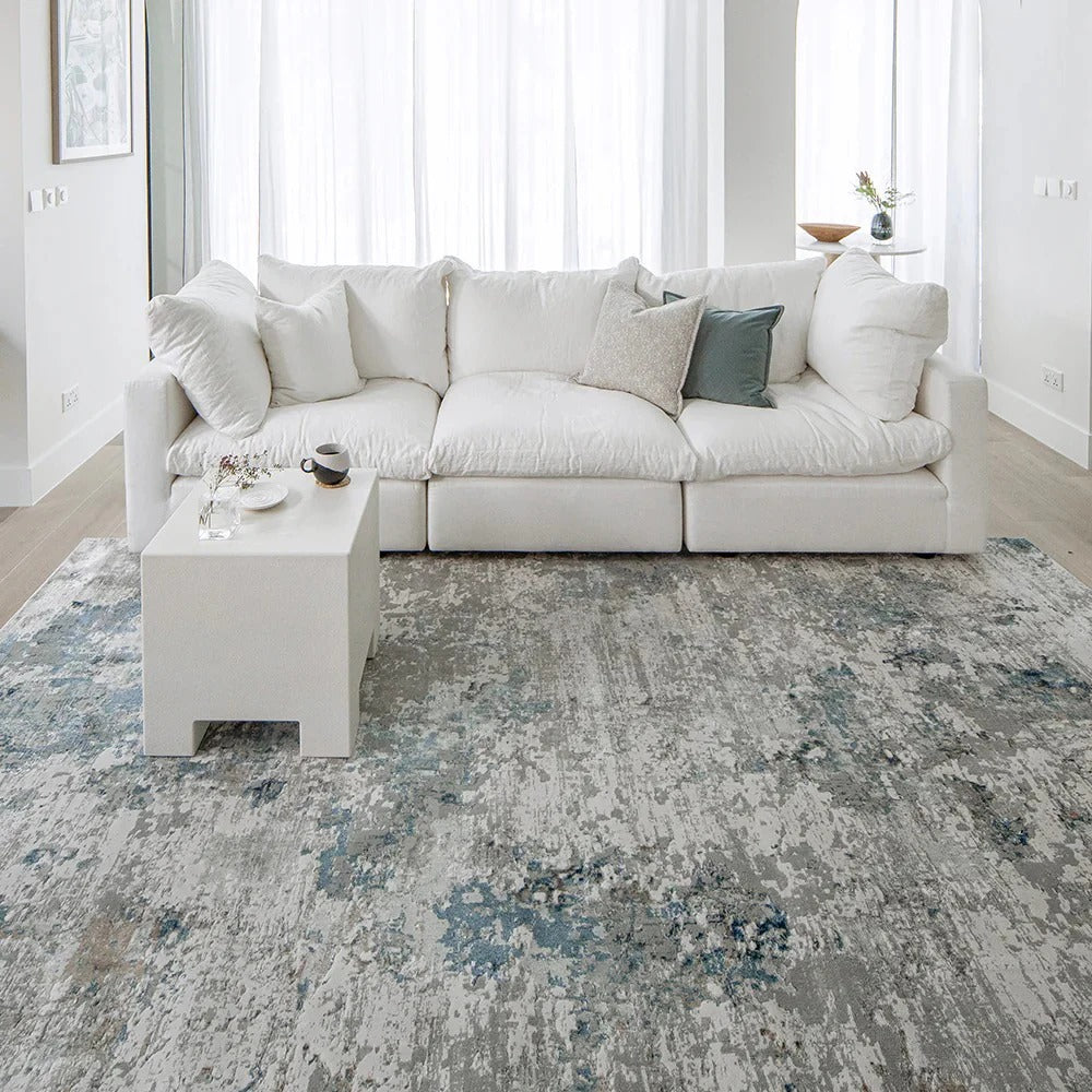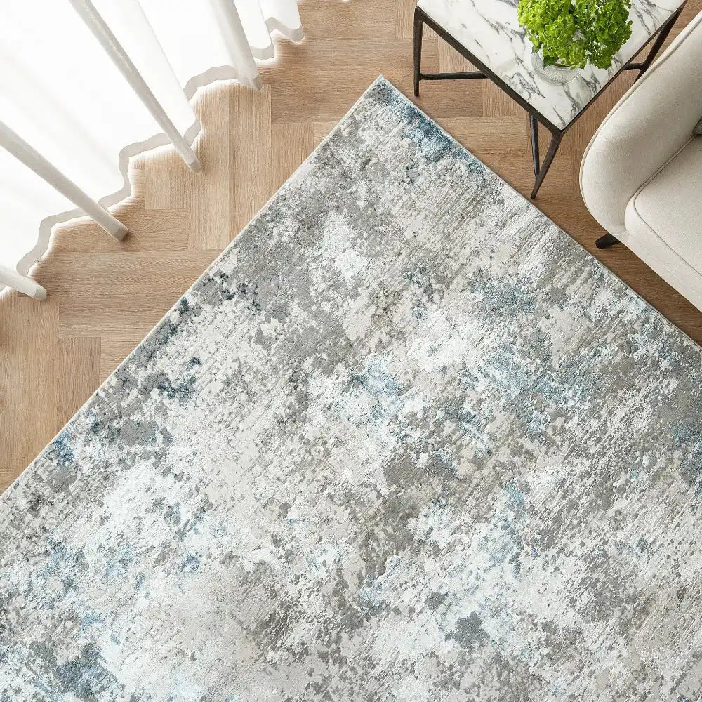 This textured carpet has a distressed abstract pattern to give it a beautiful vintage aesthetic.