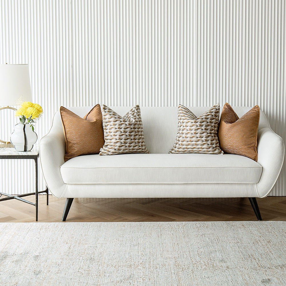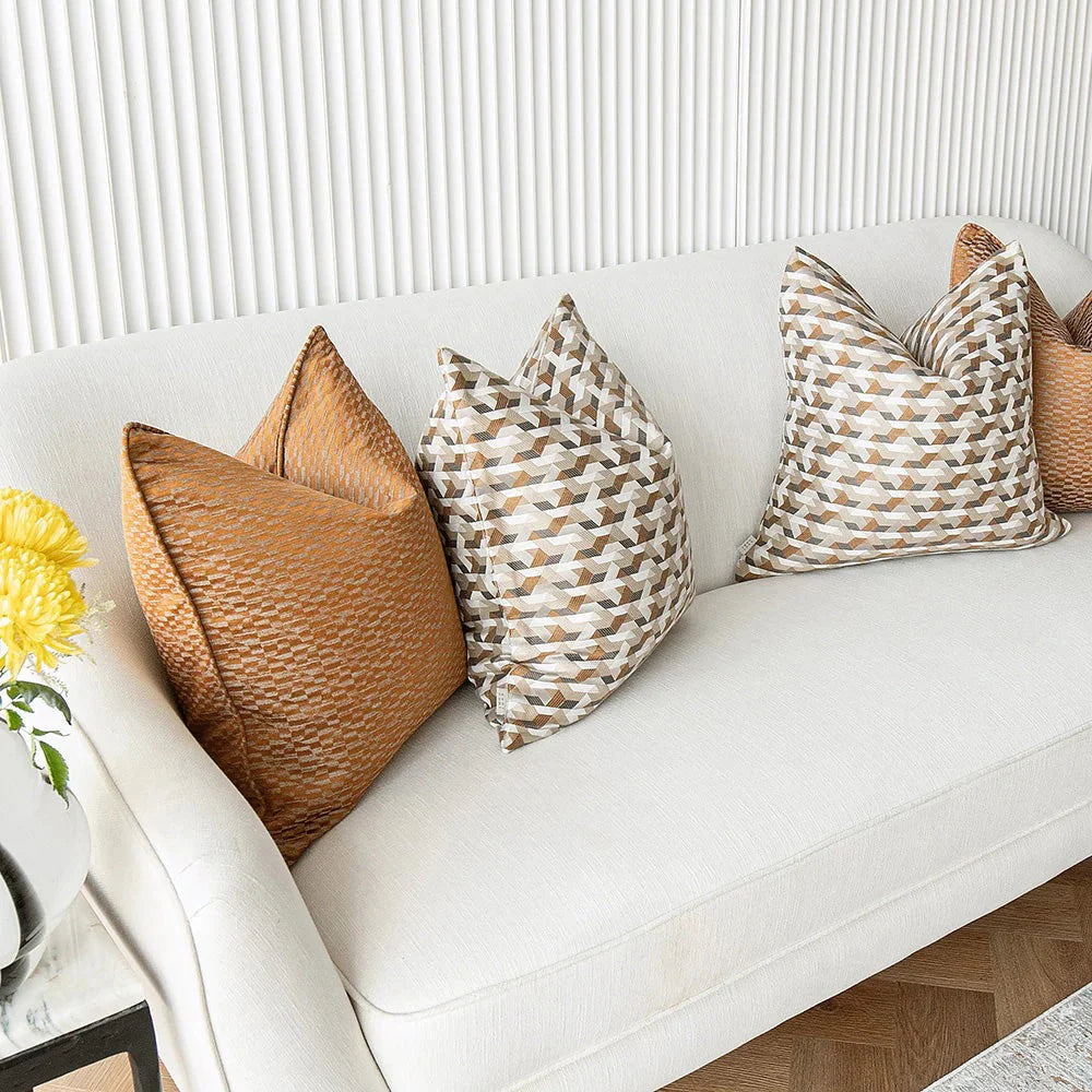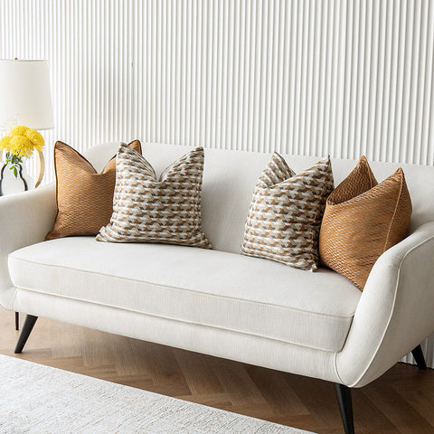 Our Elyana cushion bundle will bring a retro aesthetic to your living space. In 70s-inspired shades of brown and orange, the set includes two orange and silver cushions and two bold op-art cushions.
