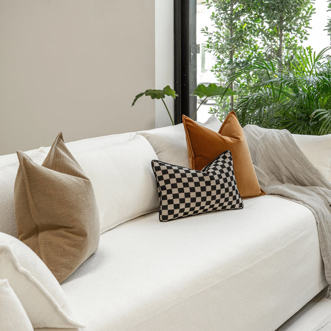 Design: One plain and one velvet cushion, and one checkerboard accent cushion