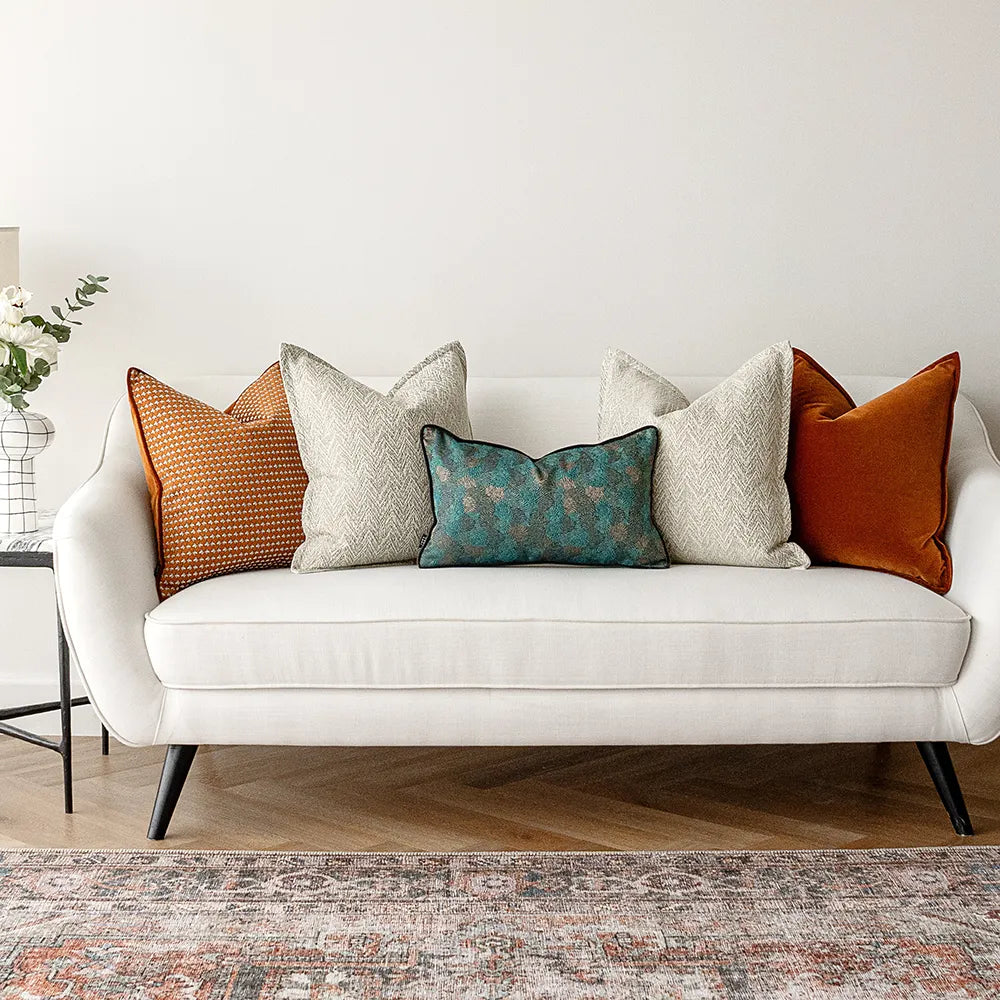 This designer cushion bundle will bring an eclectic feel to your sofa. We've teamed orange and rust with neutral zigzags, and added a peacock green accent cushion for an eye-catching finishing touch.