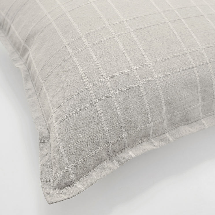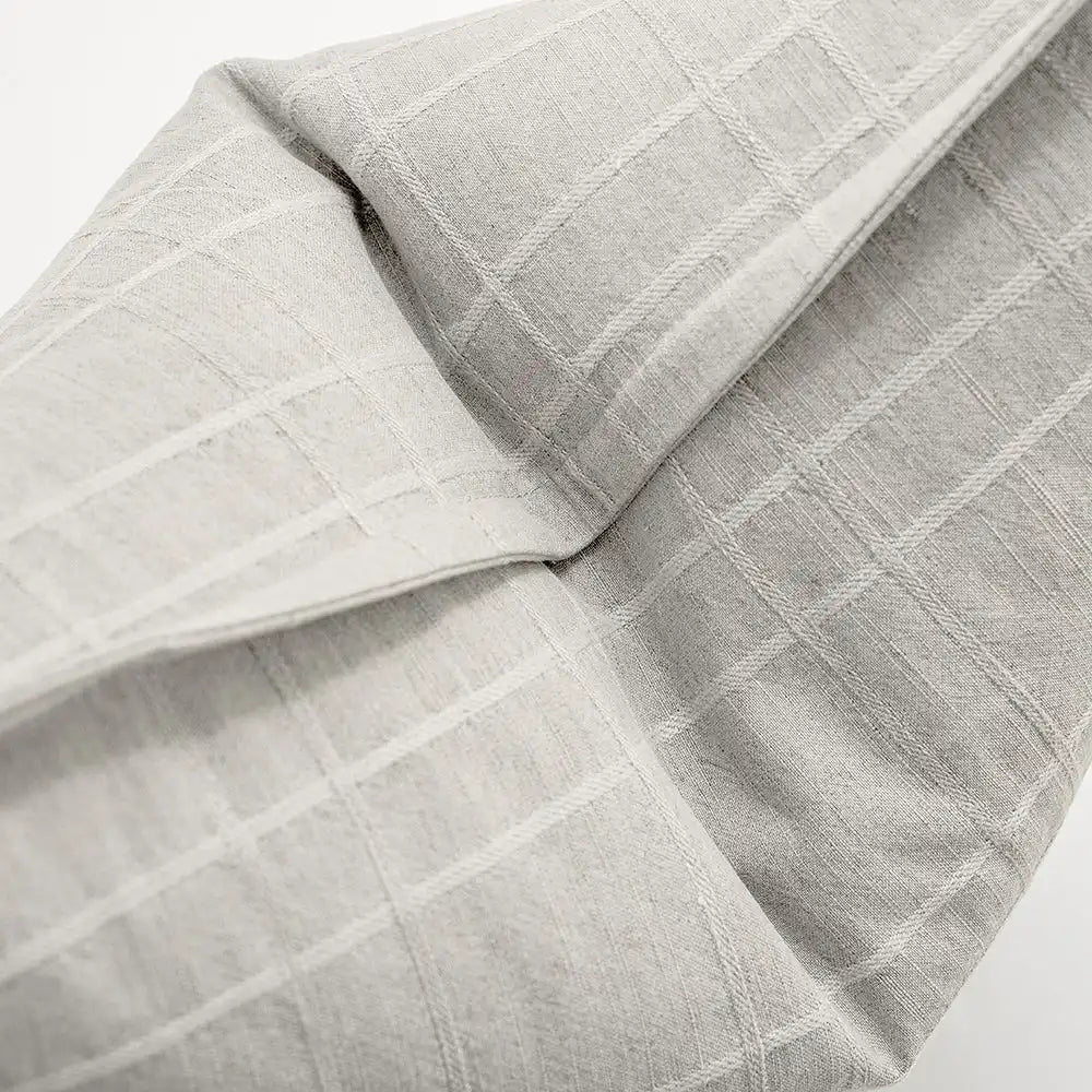 Modern design meets natural fibres in this grey cushion. This chic linen cushion comes in a subtle shade of dove grey, with paler grey stitching creating a textured grid pattern all over.