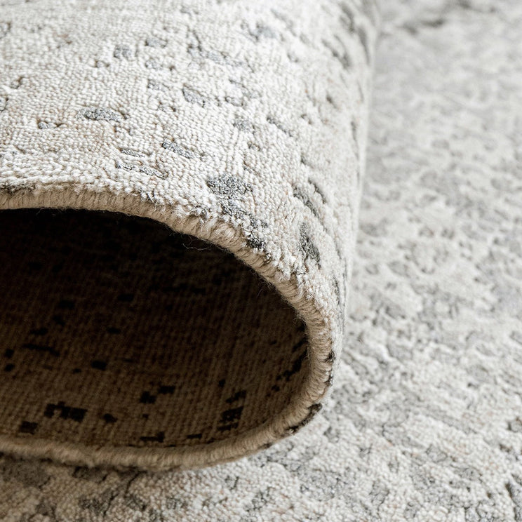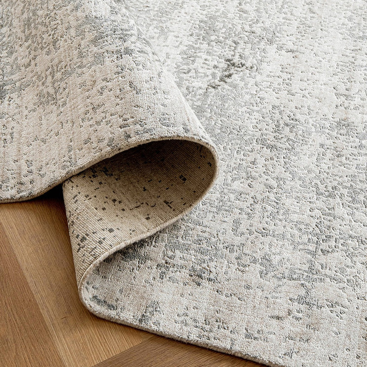 This rug is made from a tactile blend of art silk, combed wool, and cotton with a dense, high pile for softness.
