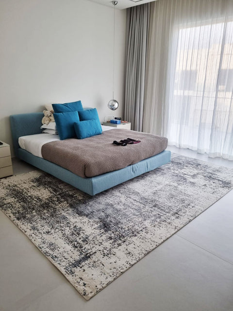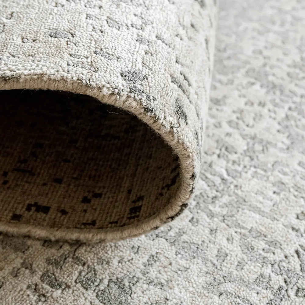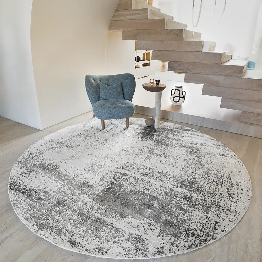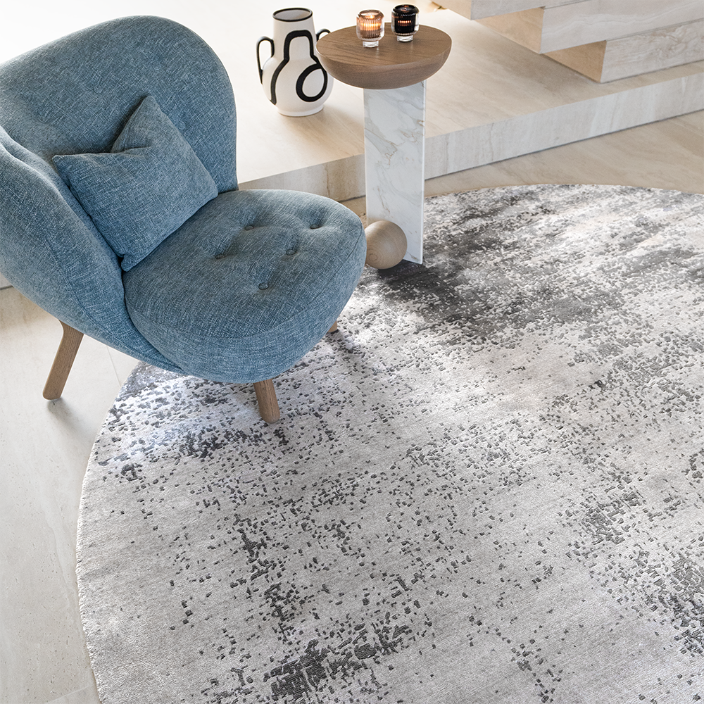 This abstract rug updates classic carpet design with an abstract pattern and modern materials.