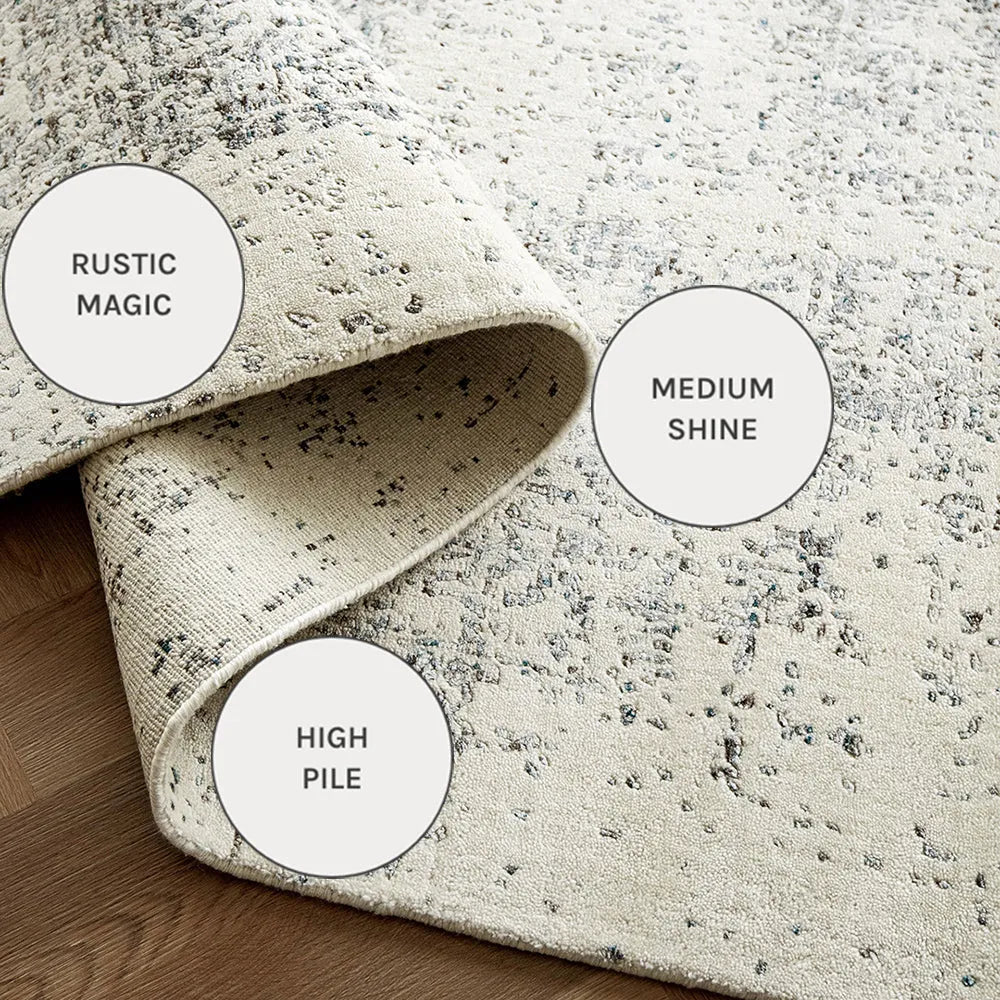 This rug is made from a tactile blend of art silk, combed wool, and cotton with a dense, high pile for softness.
