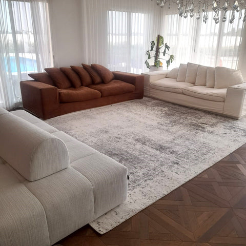This lustrous pearl and grey carpet has a sophisticated sheen that will elevate a modern interior.