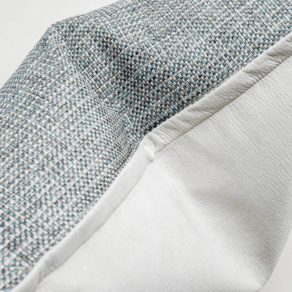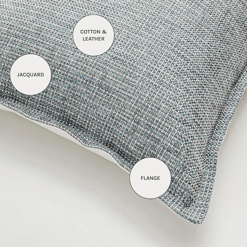 Modern and minimal, this light blue cushion will add a soft wash of colour to your living space. The designer cushion features a textured grid pattern, with a faux leather back for contrast.