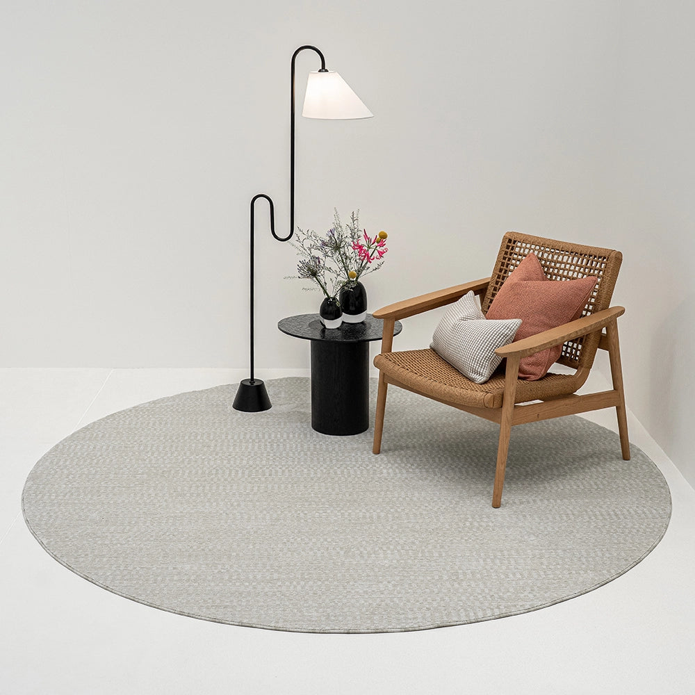 This contemporary carpet has a textured pattern of small rectangles and large-scale criss-crossing lines all over. Soft to the touch, the beige carpet is a luxury choice for a neutral interior.