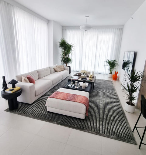 With a mix of flat and high pile, this geometric rug has a 3D quality you'll love.