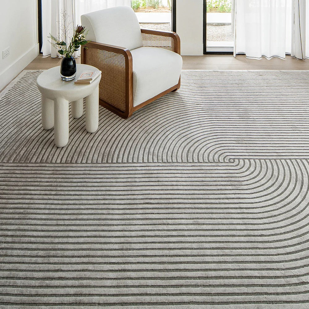 This retro-style carpet pairs an eye-catching optical pattern with a neutral colour palette to add a 60s flourish to your home.