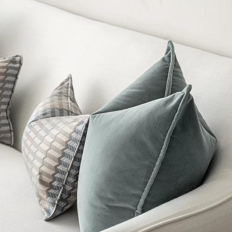 This four-piece cushion set is an instant upgrade for your living space. With two velvet cushions and two 3D pattern accent cushions, this designer bundle will breathe new life into a neutral sofa.