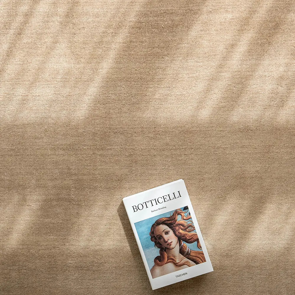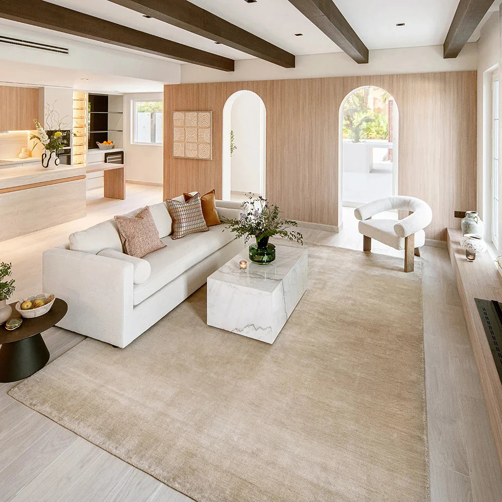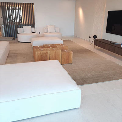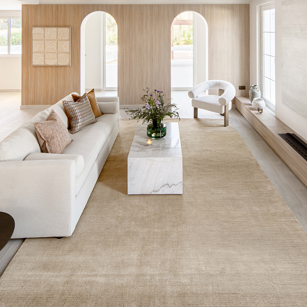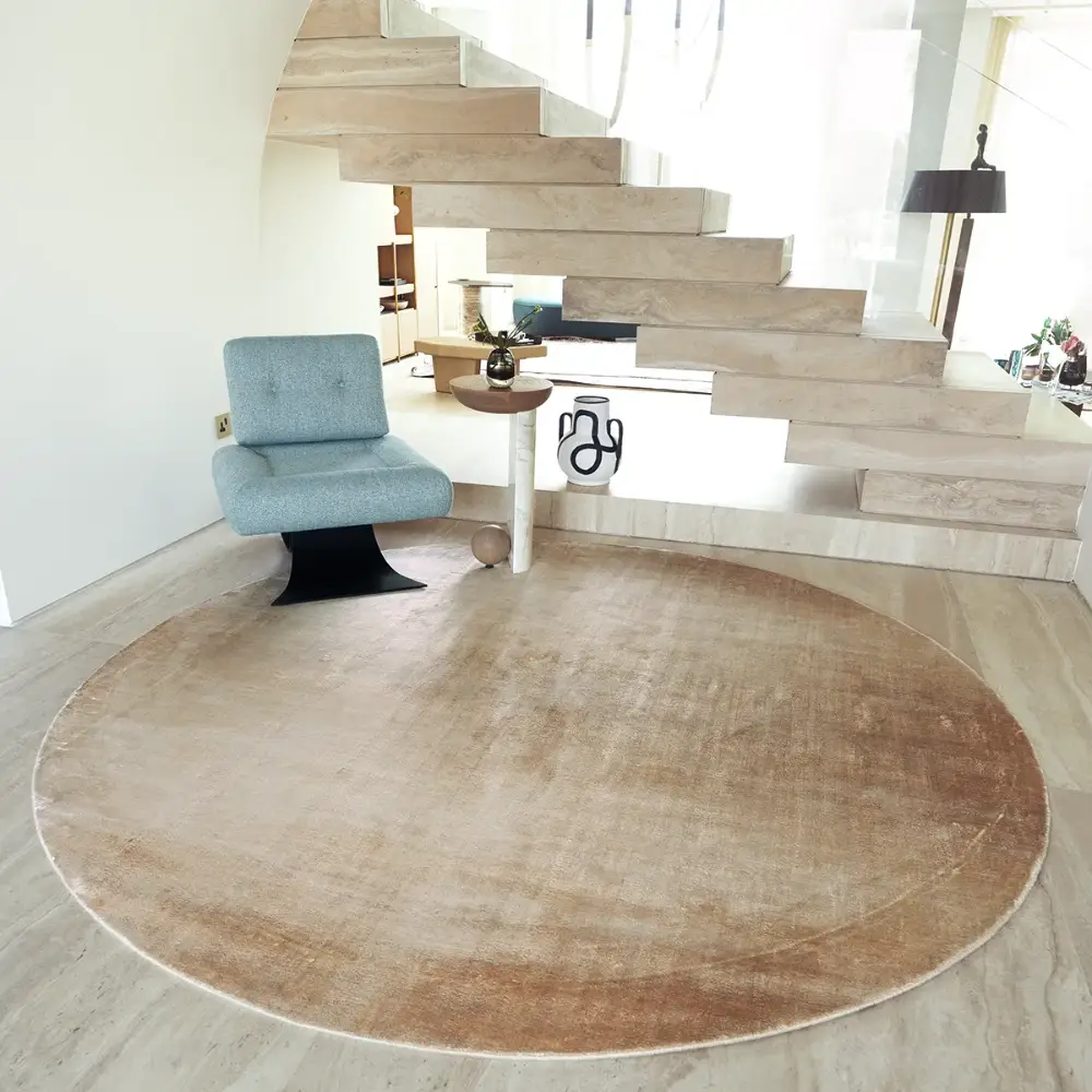 In shades of beige, this premium art silk and wool rug has a soft ombré effect to add richness to your living space.