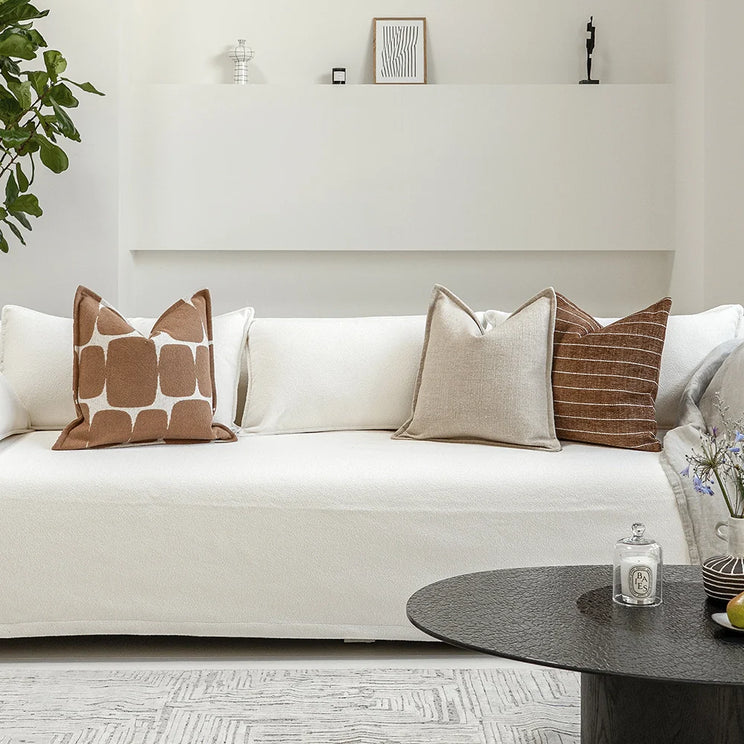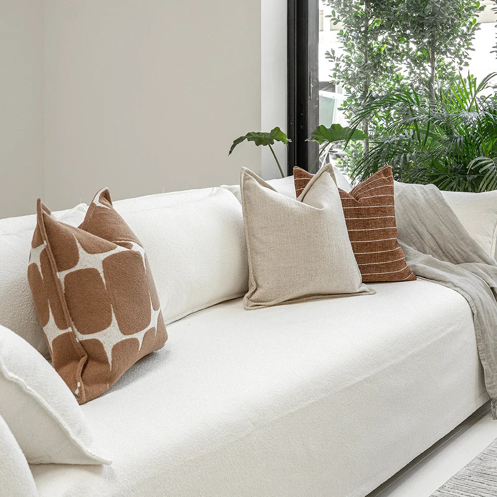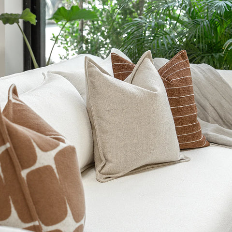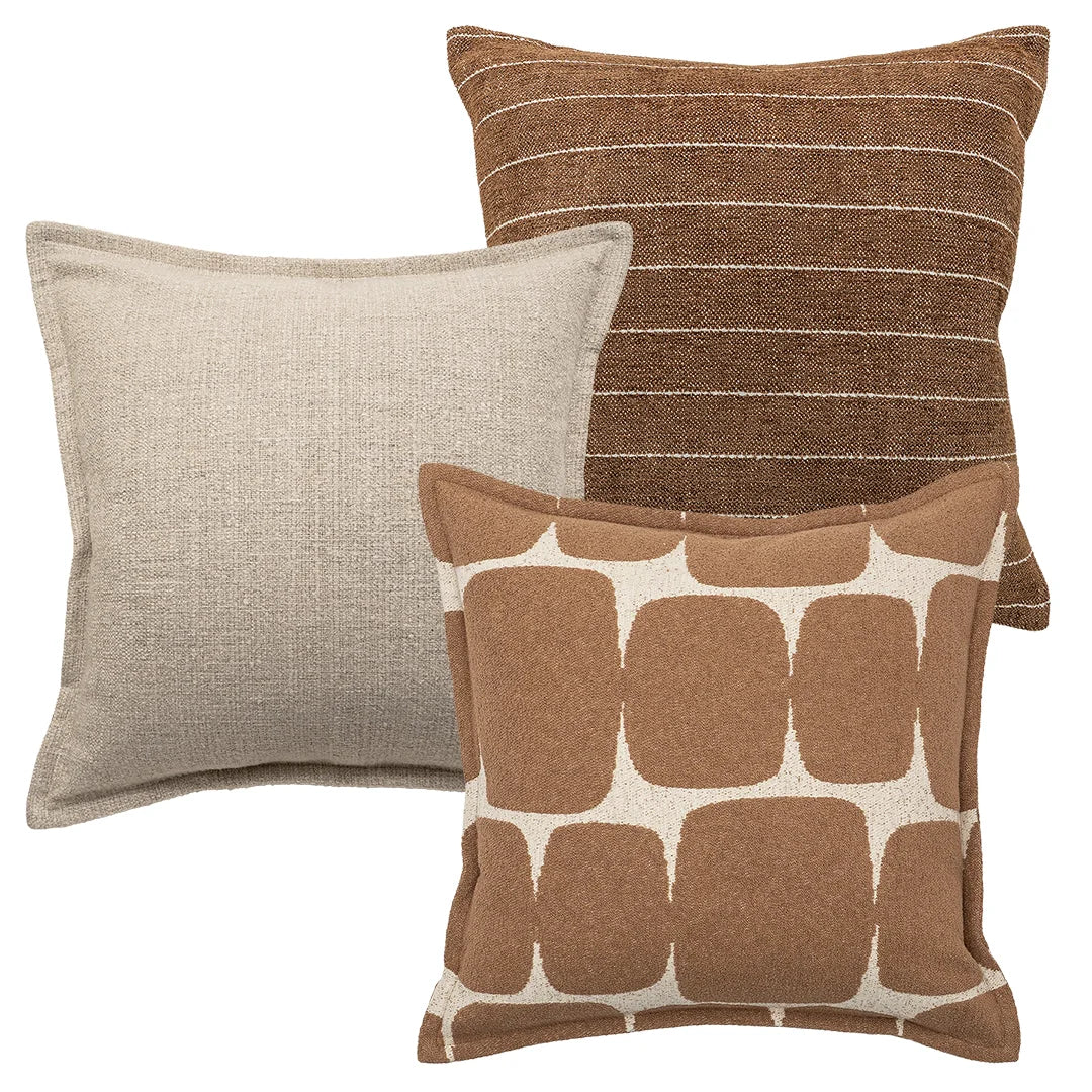 The perfect balance: this three-piece cushion bundle is both playful and refined. Mixing plain, striped and rectangle pattern designs, the ivory and brown cushions will elevate a neutral décor scheme.