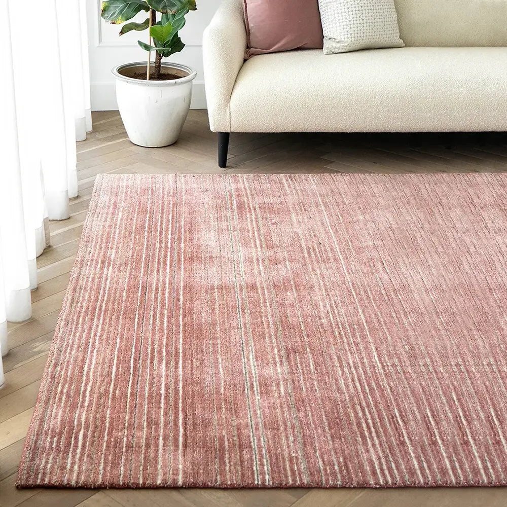 Made from a blend of art silk and combed wool, this striped carpet has been hand-finished for a luxury feel.