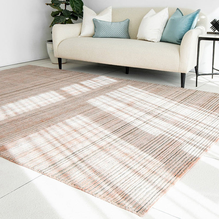 Made from a blend of art silk and combed wool, this striped carpet has been hand-finished for a luxury feel.
