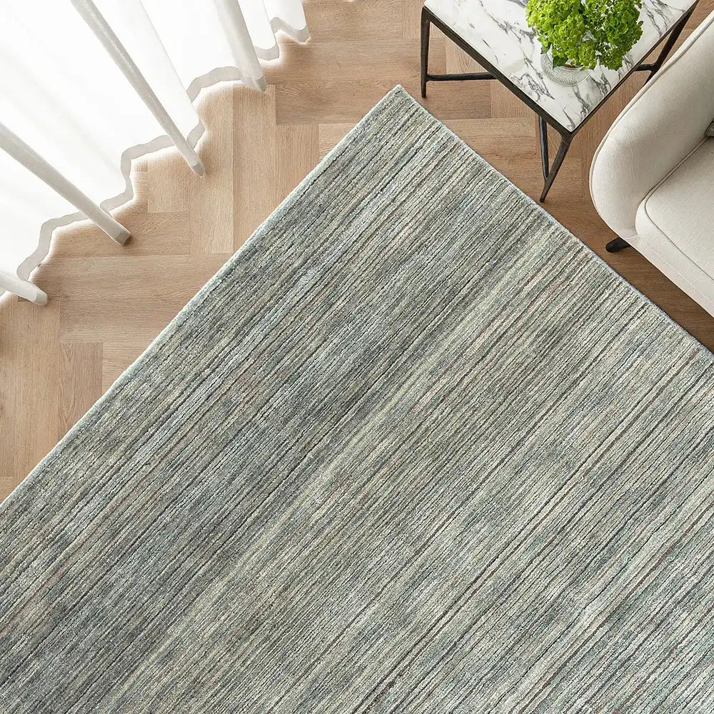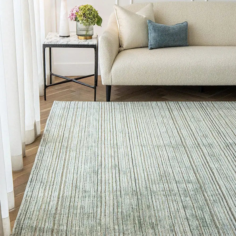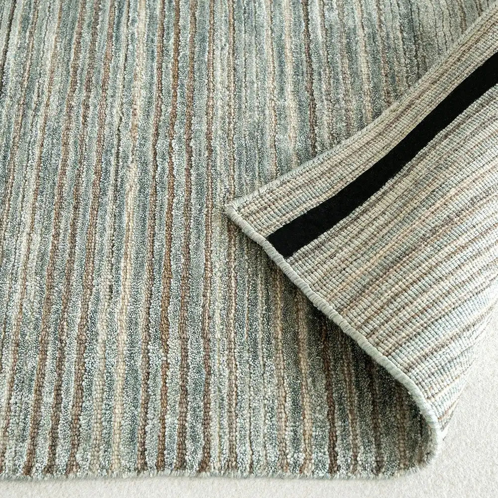 Made from a blend of art silk and combed wool, this striped carpet has been hand-finished for a luxury feel.