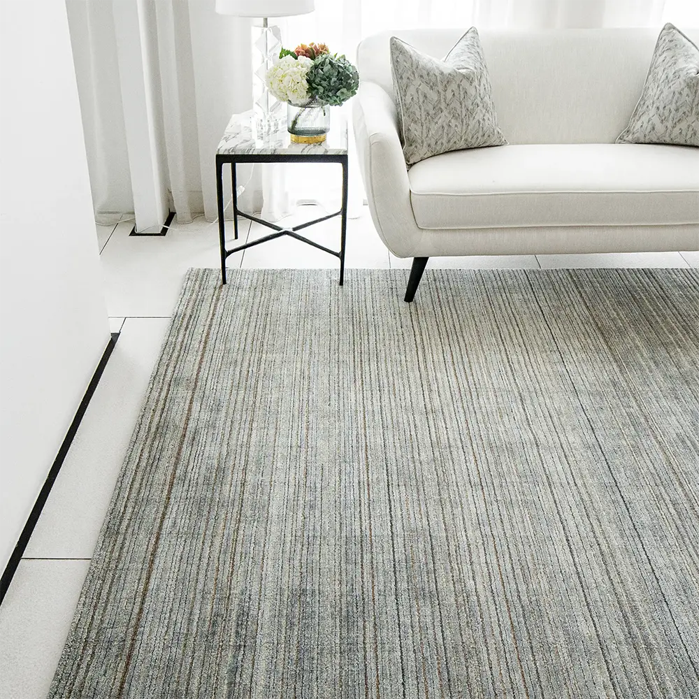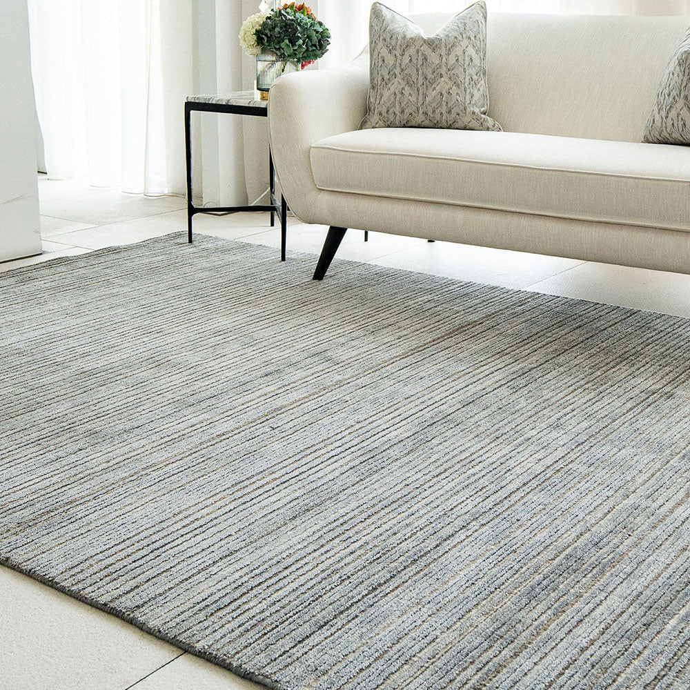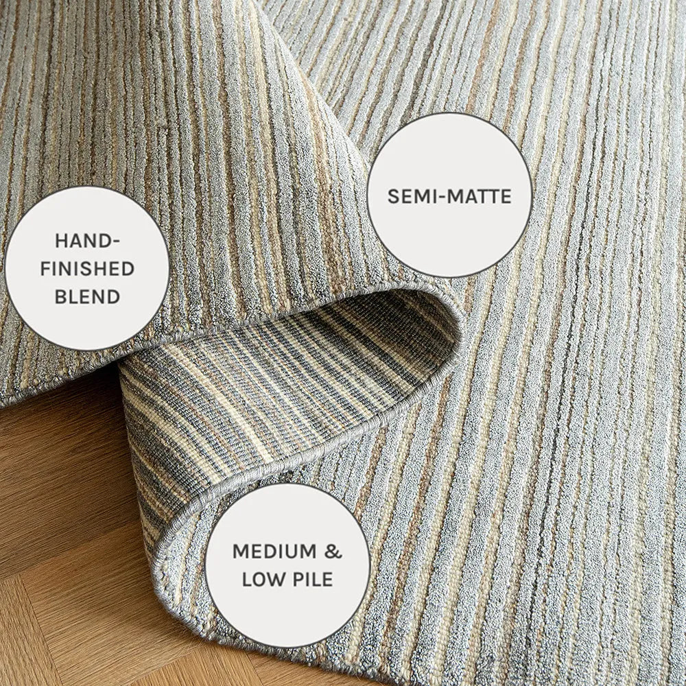 Made from a blend of art silk and combed wool, this striped carpet has been hand-finished for a luxury feel.