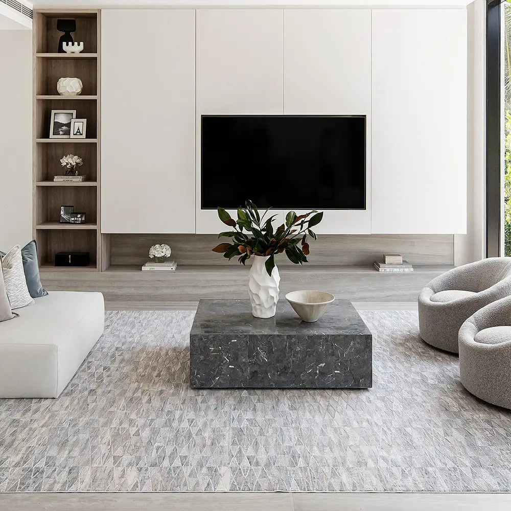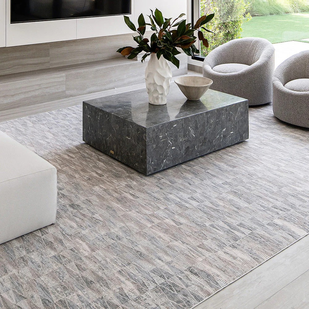 This boho-style carpet features an interlocking triangle design that will sit perfectly in an eclectic interior.