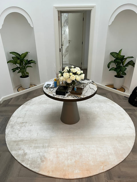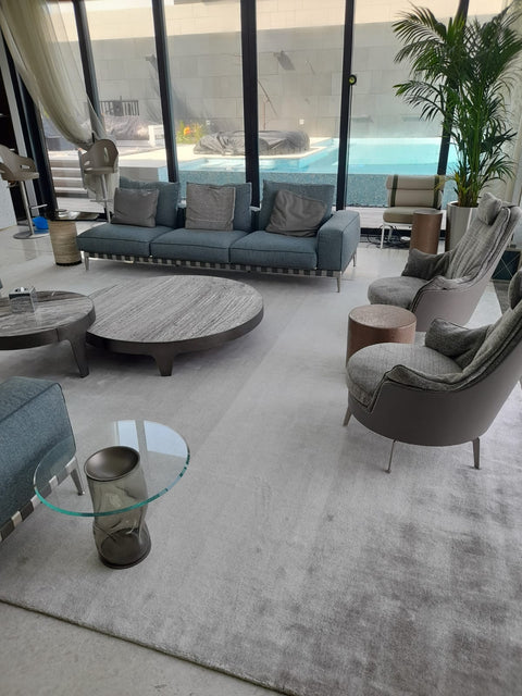 This luxury carpet is made from art silk with a dense, heavy pile, and has been hand-finished to heighten the upscale aesthetic.