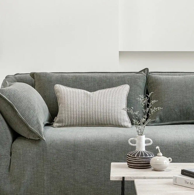 In a neutral palette of beige and white, this grid pattern cushion has a touch of wool for a cosy feel. It's a versatile accent cushion that will upgrade any corner of your home.