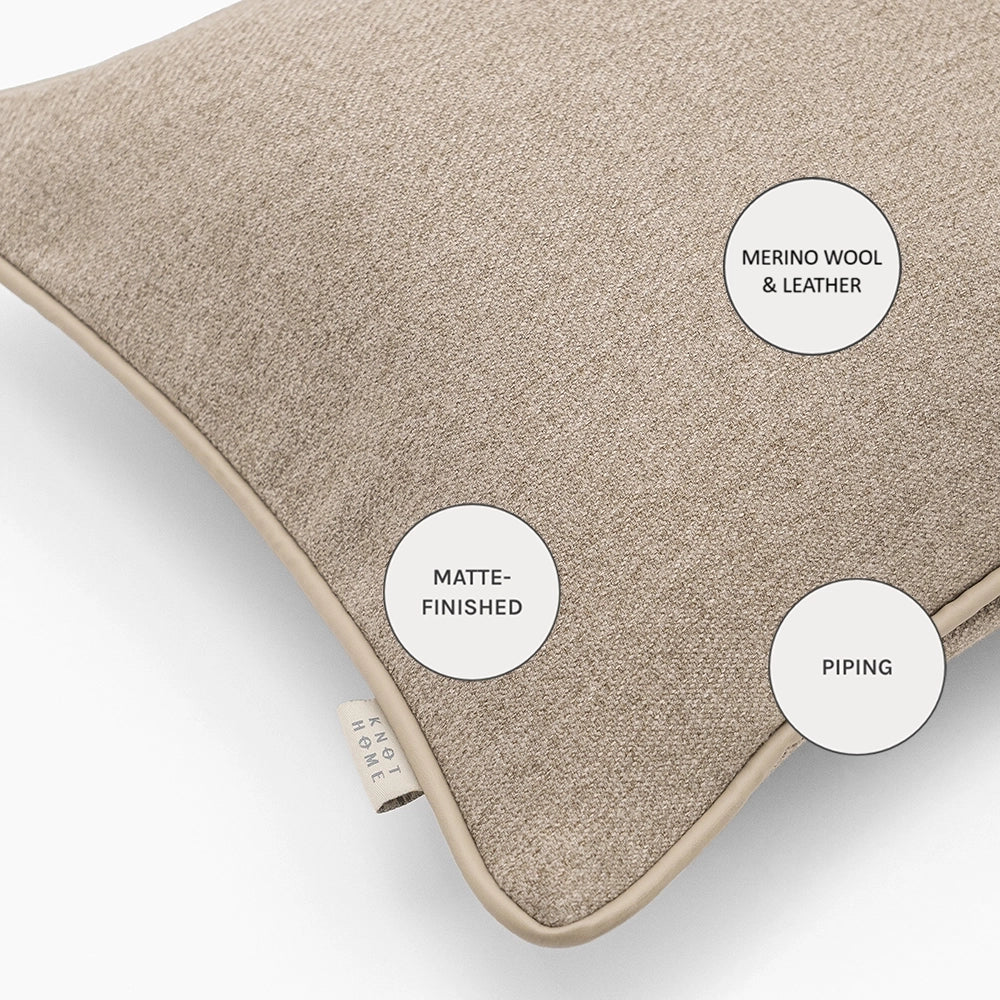 Crafted from a luxurious blend of superfine Merino wool and natural fibers, this cushion offers a smooth, soft texture with a refined melange depth. Finished with Leatherette piping, it combines quiet sophistication with timeless craftsmanship.