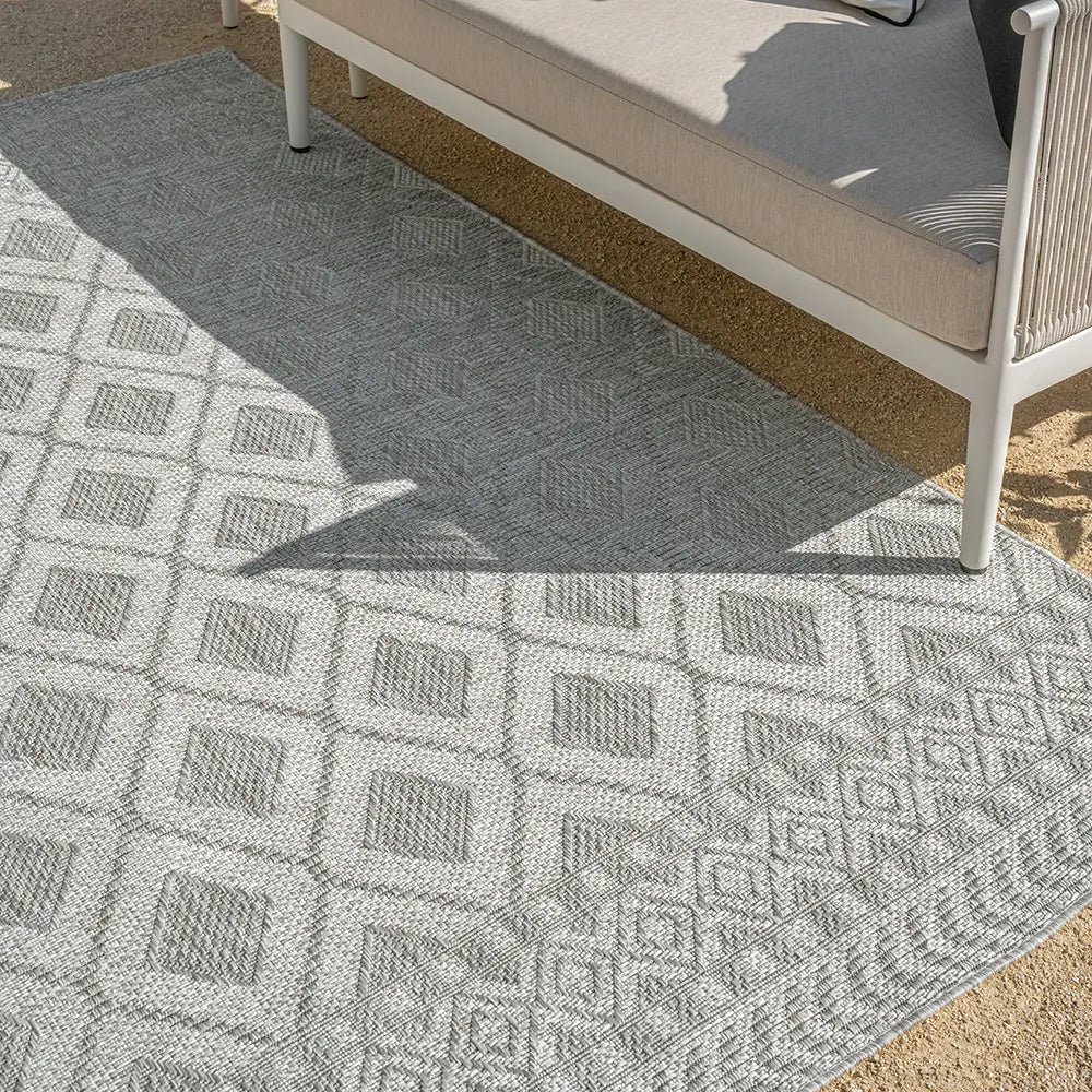 This carpet features a criss-crossing weave for an artisan feel