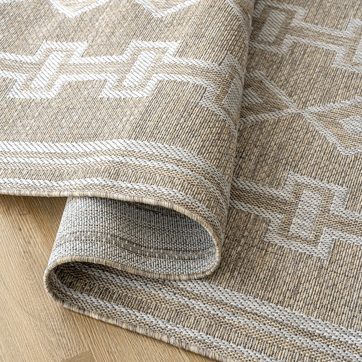 This carpet features a criss-crossing weave for an artisan feel