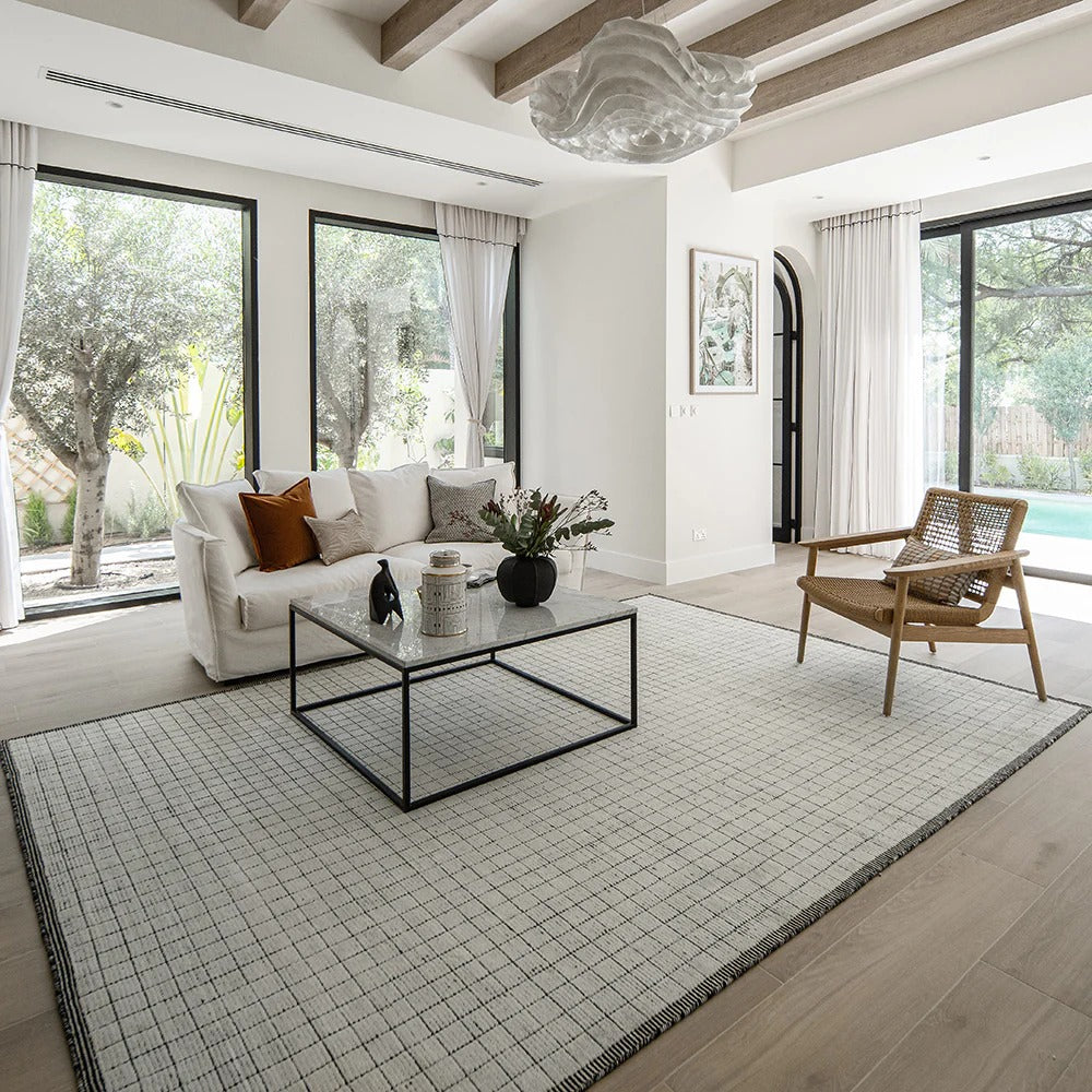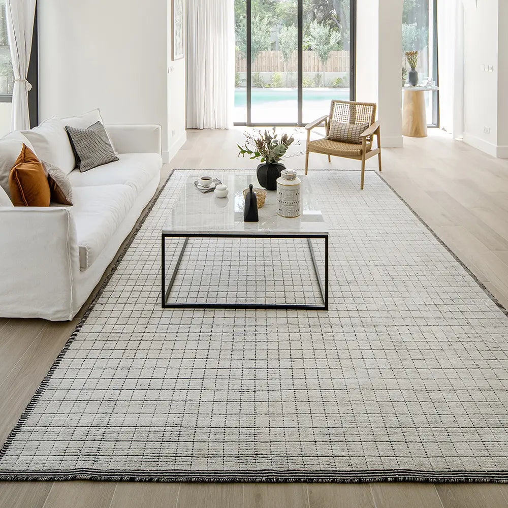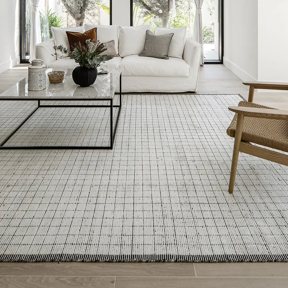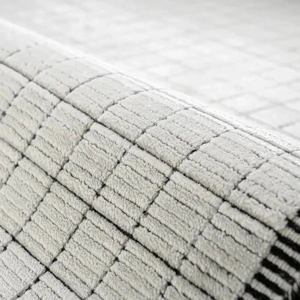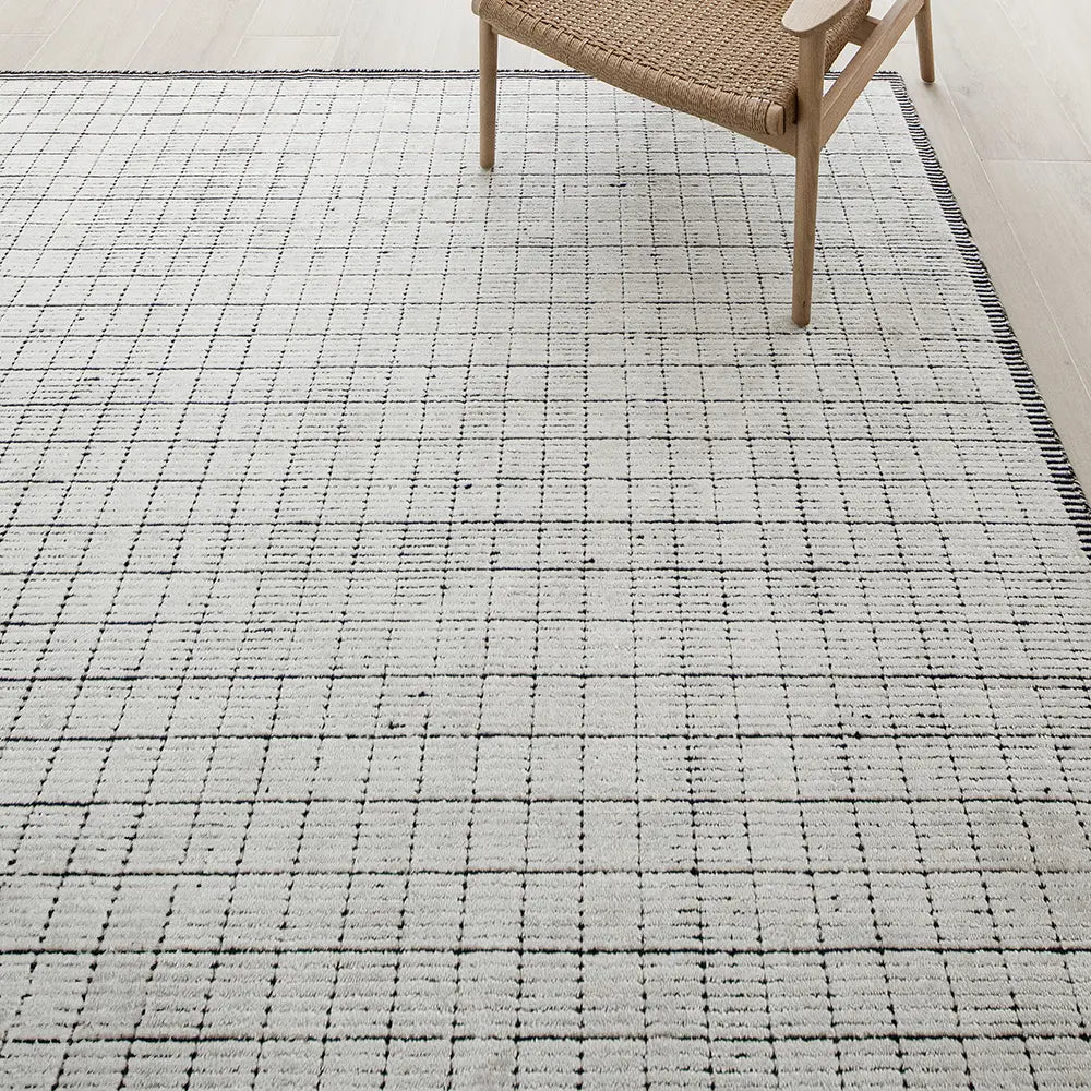 In a chic palette of black and white, this grid pattern carpet will update your interior in a flash.