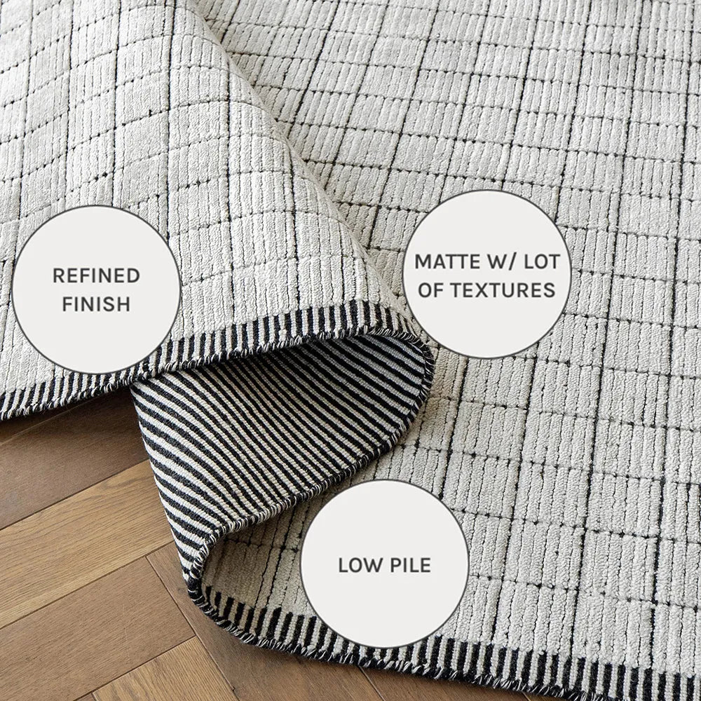 In a chic palette of black and white, this grid pattern carpet will update your interior in a flash.