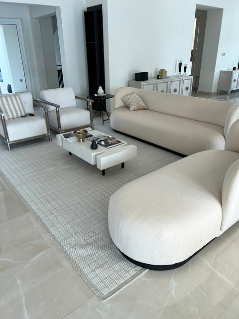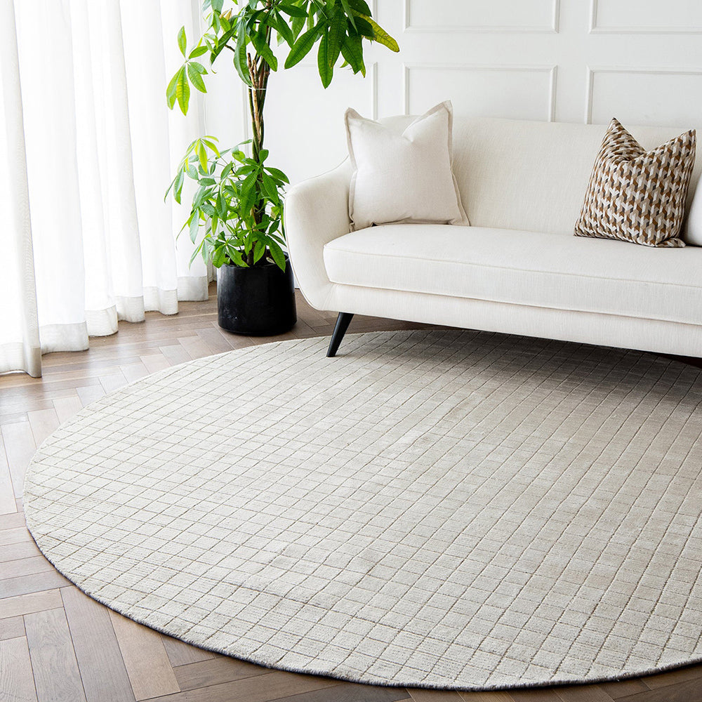A modern classic, this beige carpet has a textured grid pattern for a clean, graphic look you'll love.
