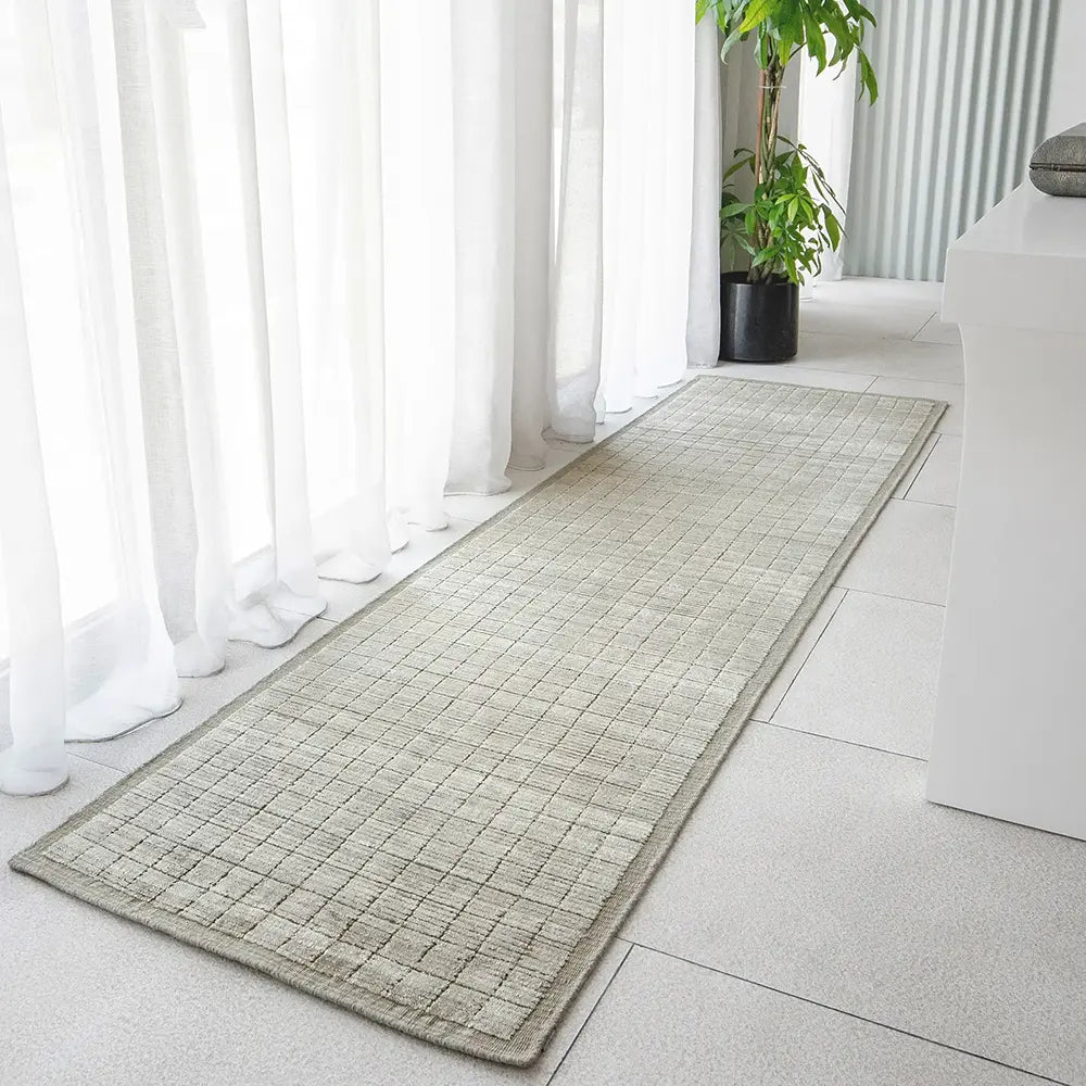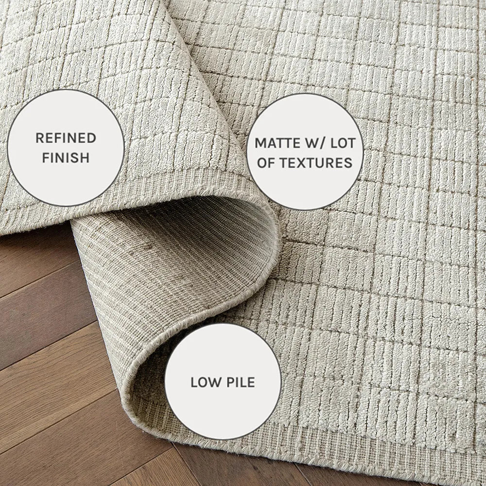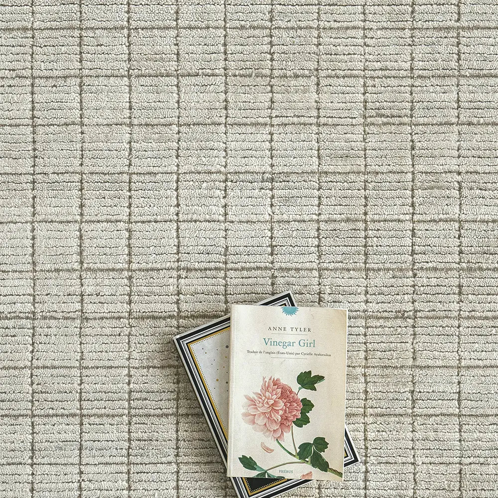 A modern classic, this beige carpet has a textured grid pattern for a clean, graphic look you'll love.