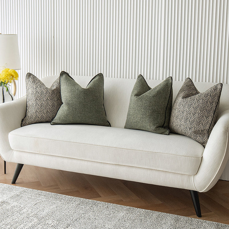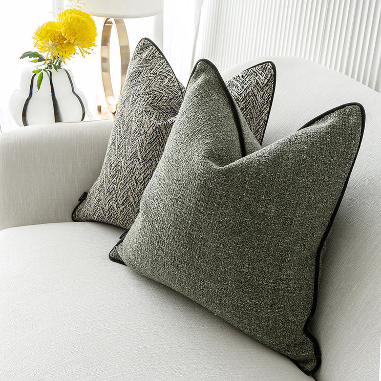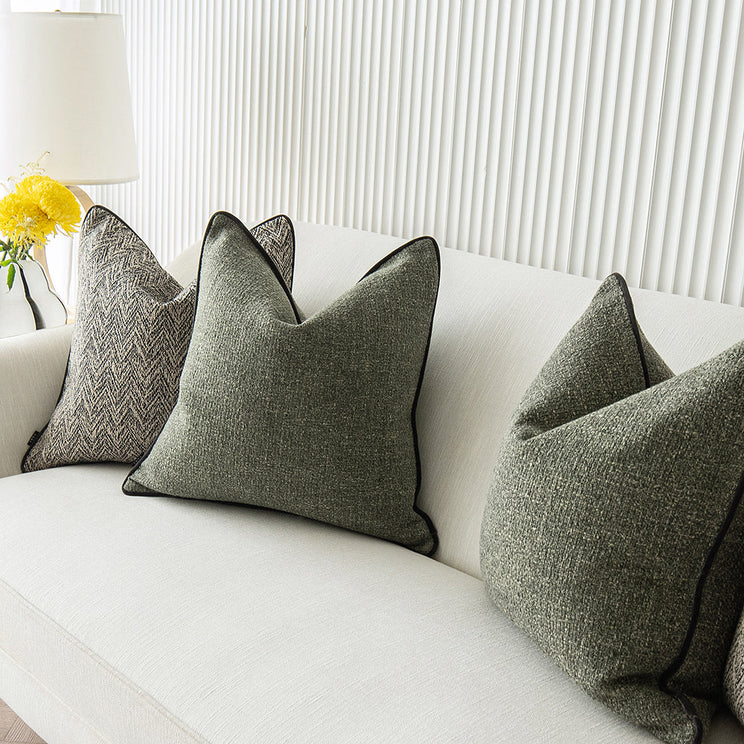 Soft textures meet modern design in our Ghida cushion bundle. The cosy set includes two heavily textured zigzag cushions and two green and black jacquard cushions, with contemporary contrast piping.