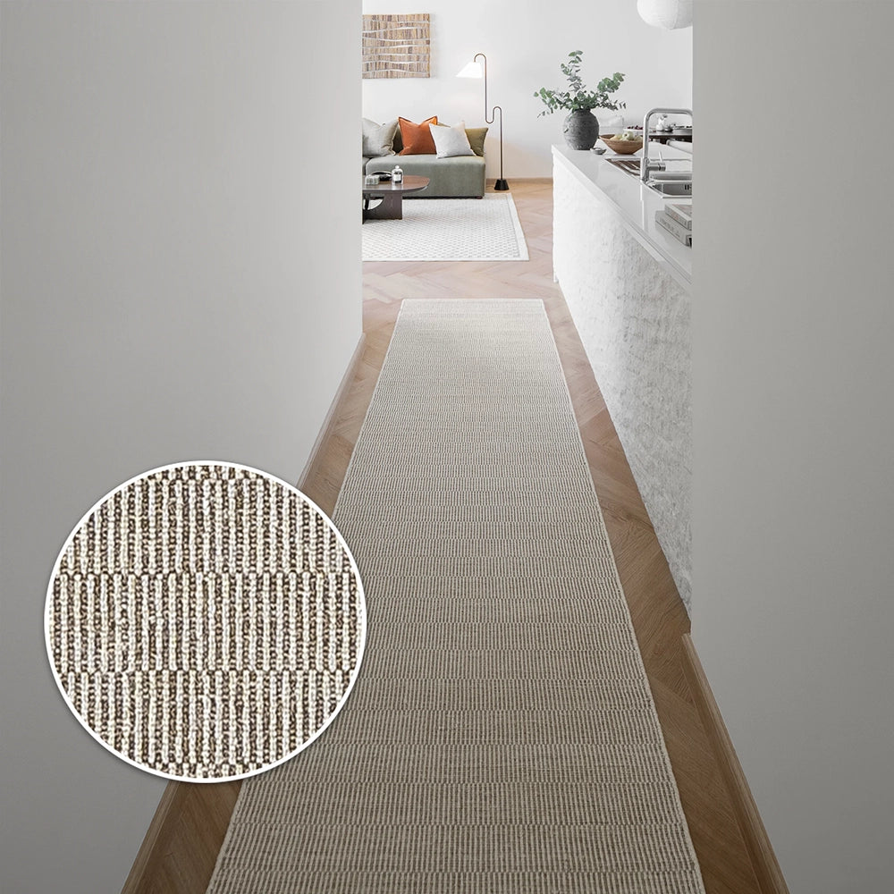 Add a layer of luxury to a modern interior with this pure wool carpet. Bands of slender stripes in chic pale beige and taupe bring this neutral carpet to life. It's an instant upgrade for any home.