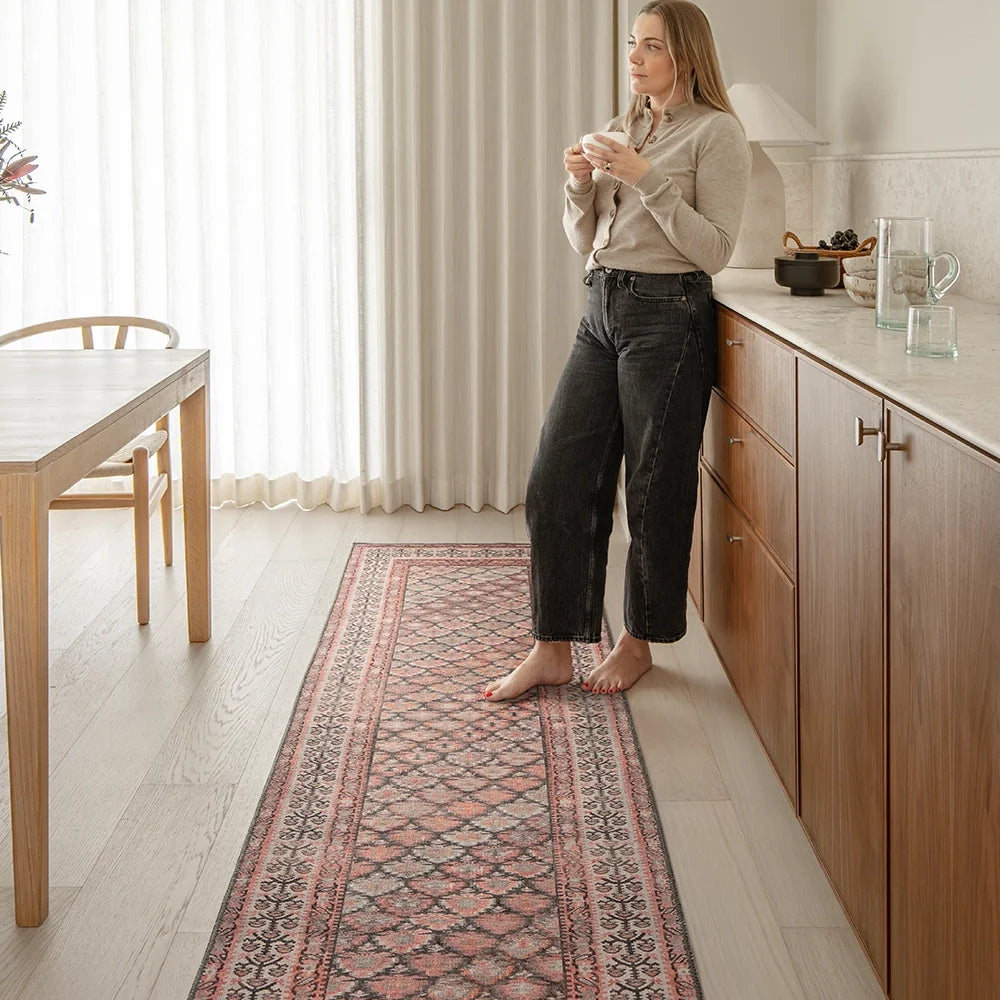 This fan pattern carpet has small-scale shell shapes arranged in diagonal lines, creating a lively display. The coral carpet will add warmth and softness to bedrooms, living rooms and hallways.