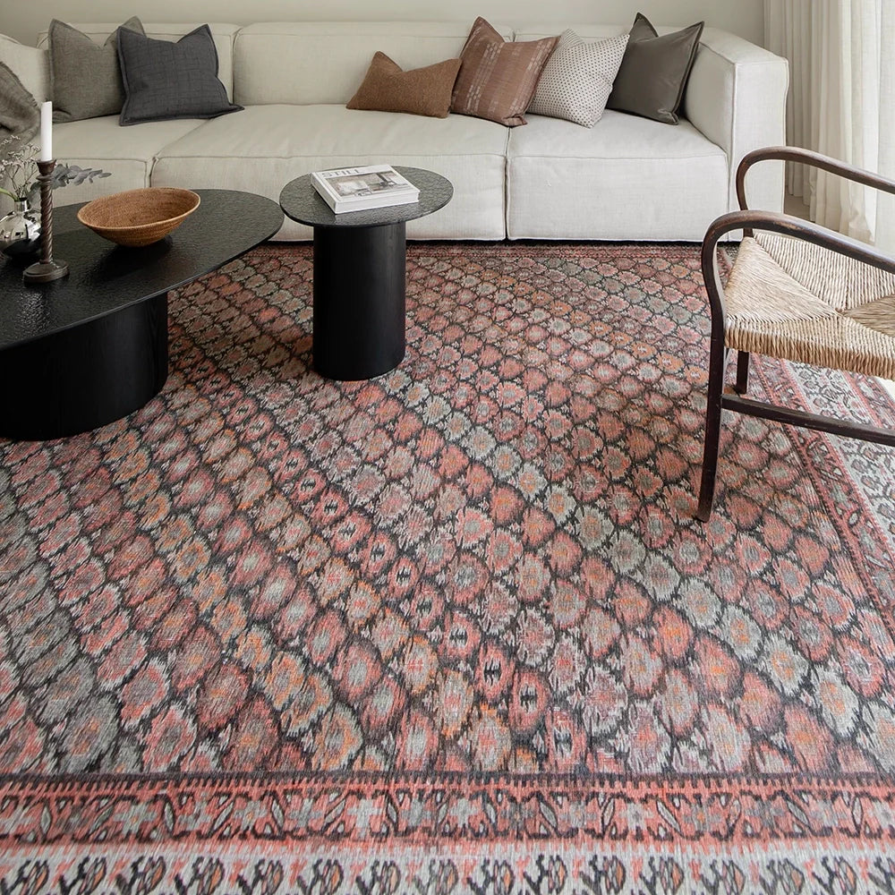 This fan pattern carpet has small-scale shell shapes arranged in diagonal lines, creating a lively display. The coral carpet will add warmth and softness to bedrooms, living rooms and hallways.