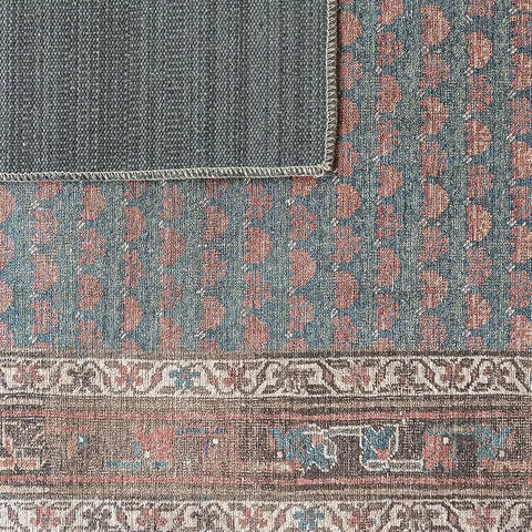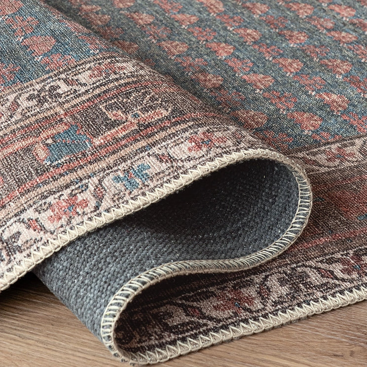 Traditional Pattern Slate Blue and Terracotta Carpet