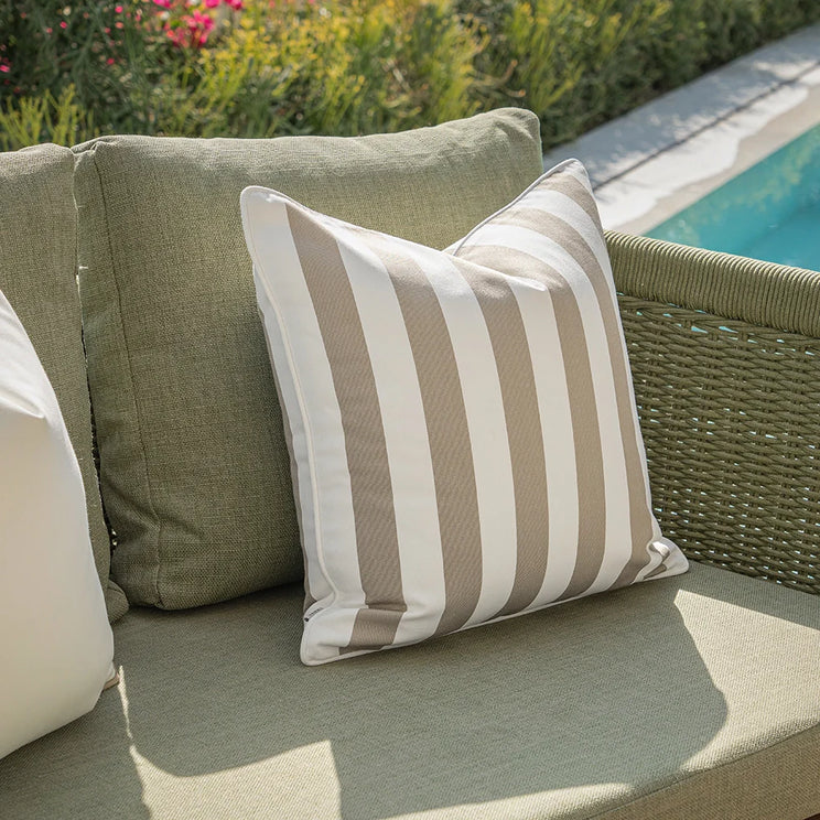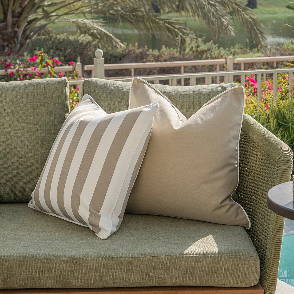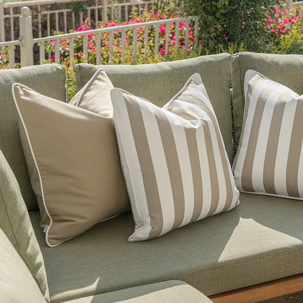 Bring symmetry to your outdoor space with this four-piece cushion set. It includes two plain cushions and two wide stripe cushions in a neutral colour palette that will complement any style of décor.