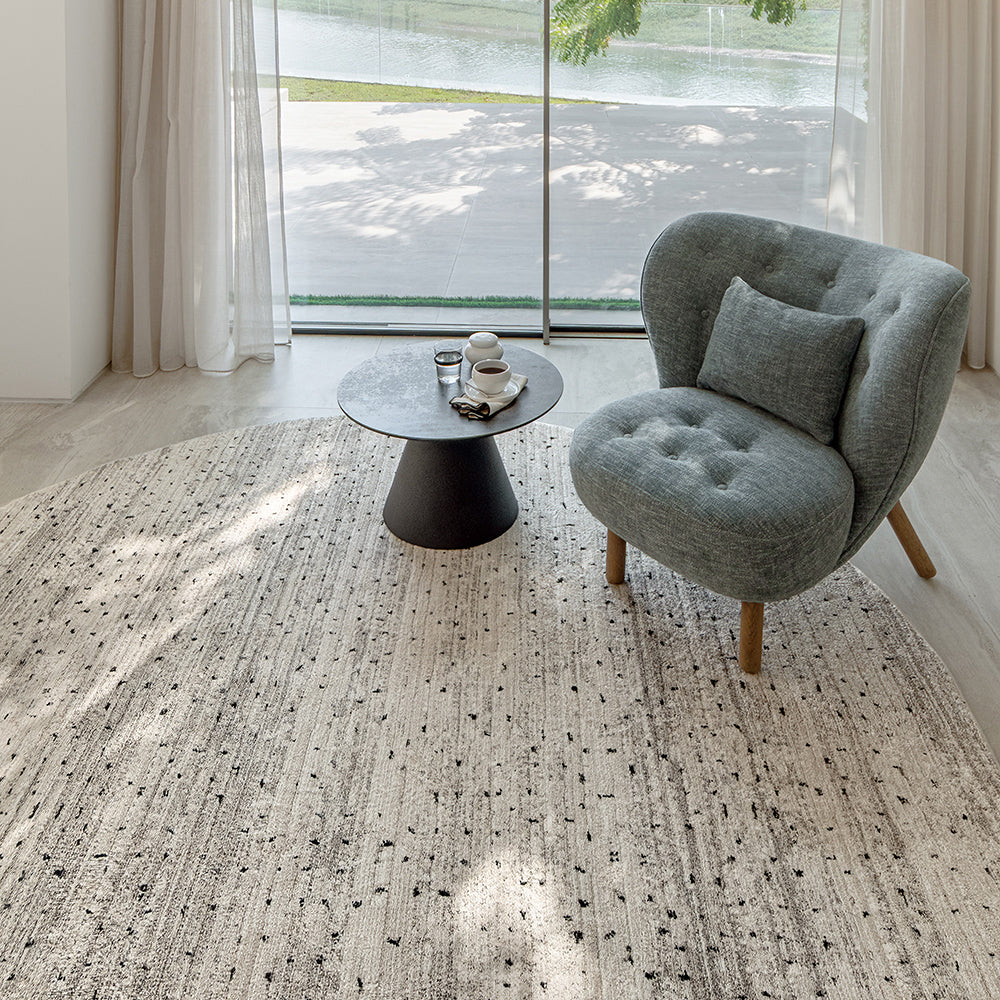 A gentle colour palette gives this beige and black carpet a sense of zen.