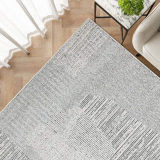 Угольный ковер с узкими линиями и геометрическим узором цвета слоновой кости